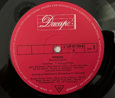 G724 Beethoven Fidelio Schock VPO Furtwangler 3LP Dacapo 1 C 147-01 105/7 M