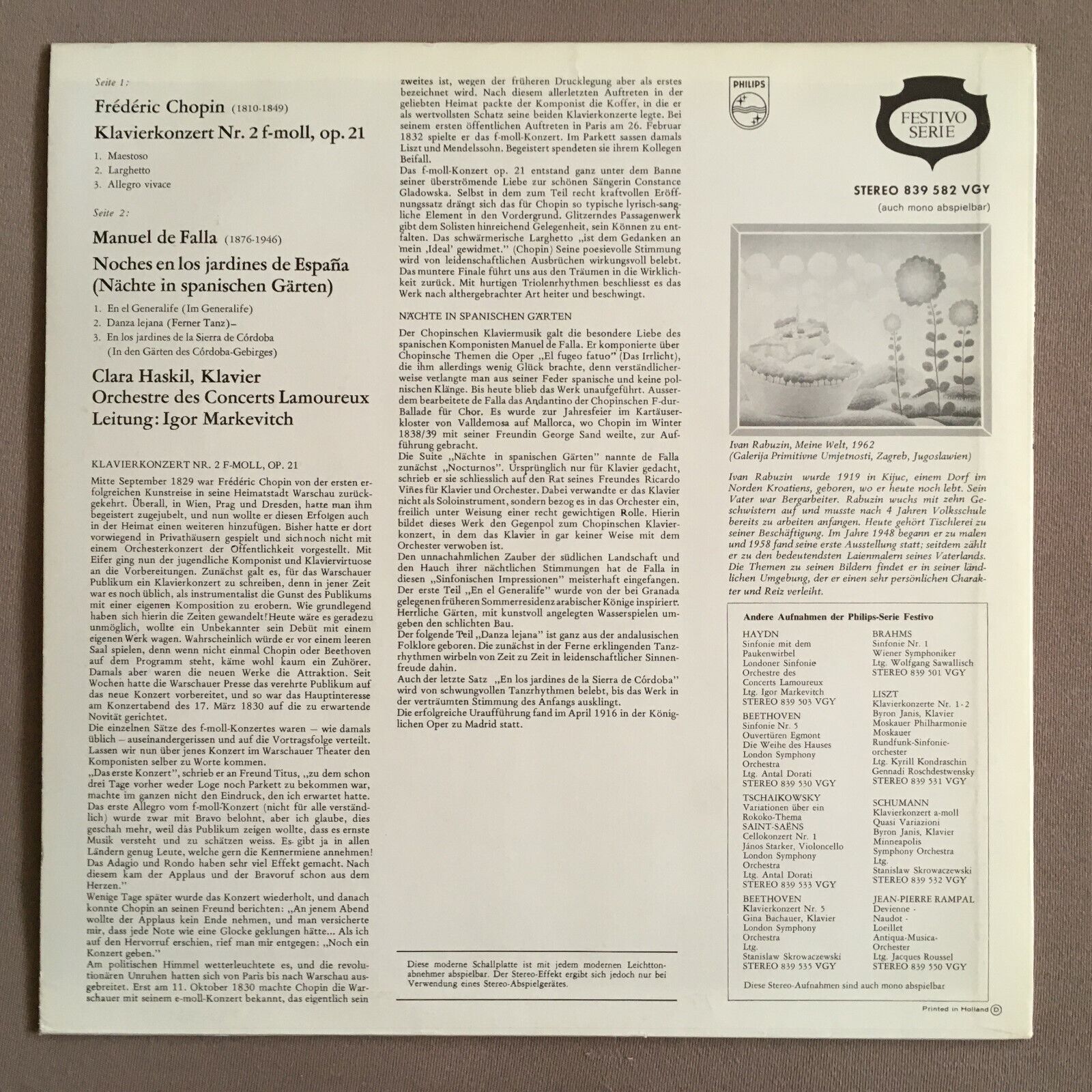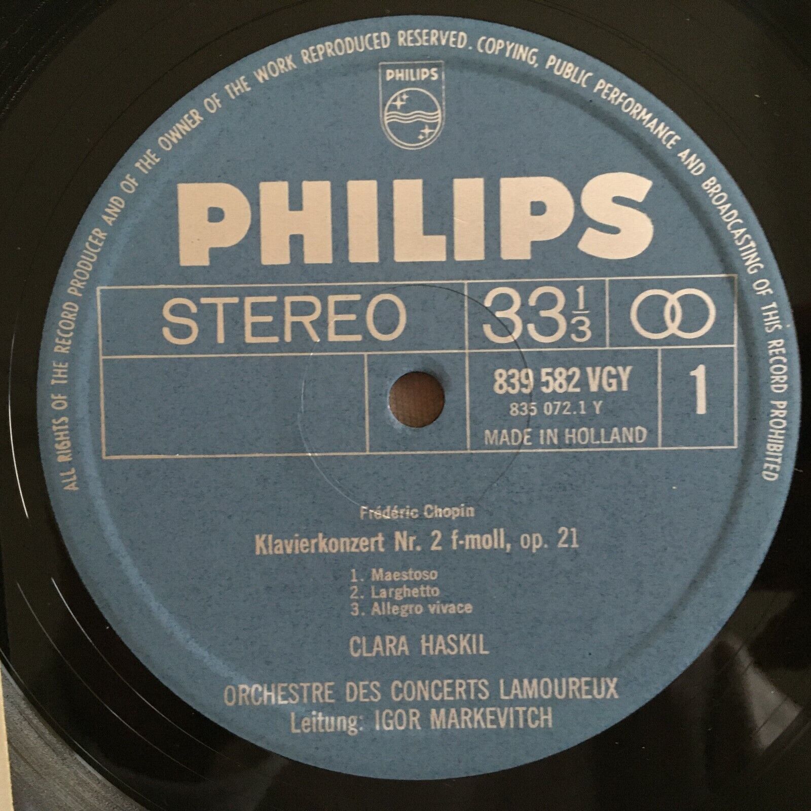 X786 Chopin Piano Concerto No.2 Haskil Markevitch Philips 839 582 VGY Stereo
