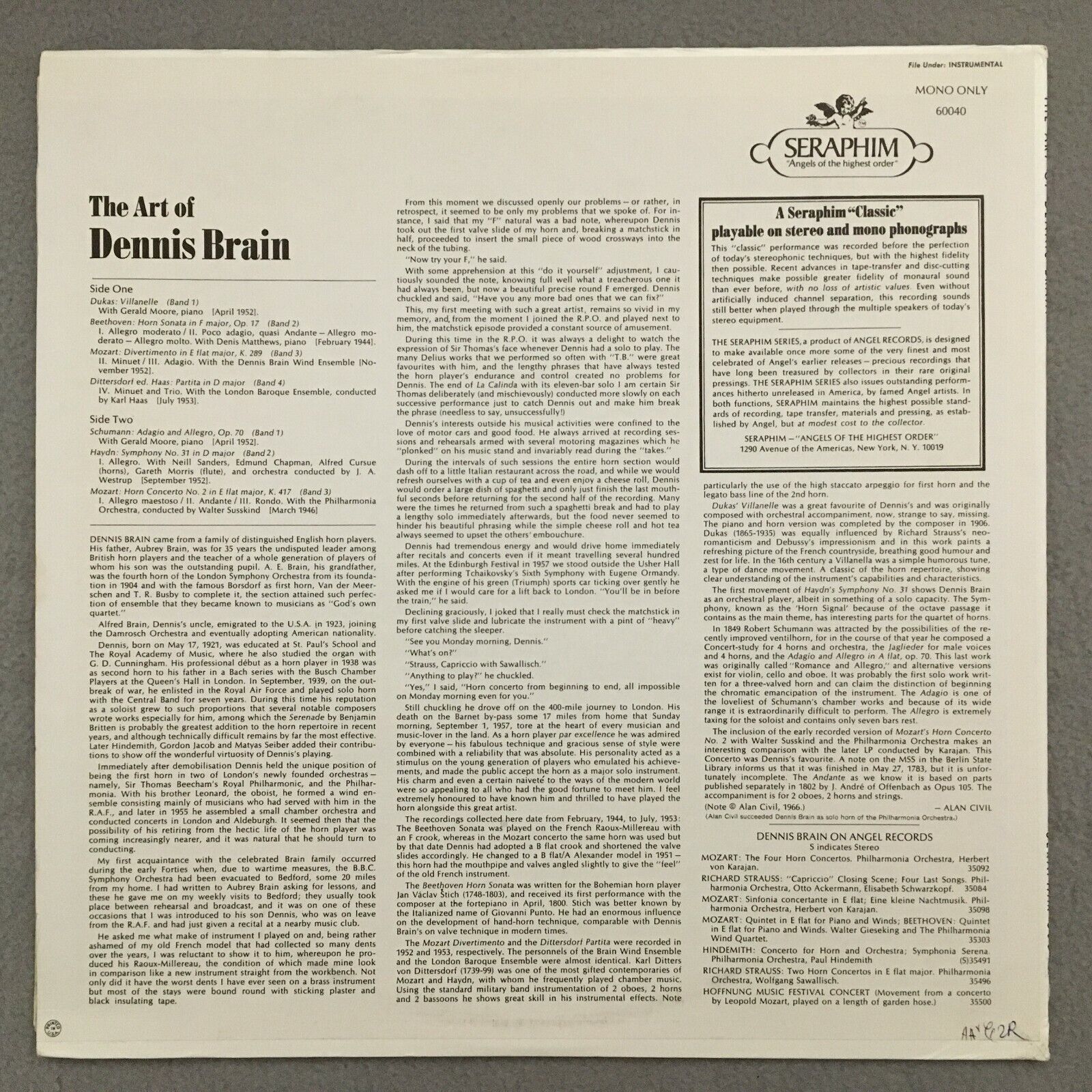 S355 Dennis Brain Music by Beethoven Mozart Schumann Haydn Dukas Seraphim 60040