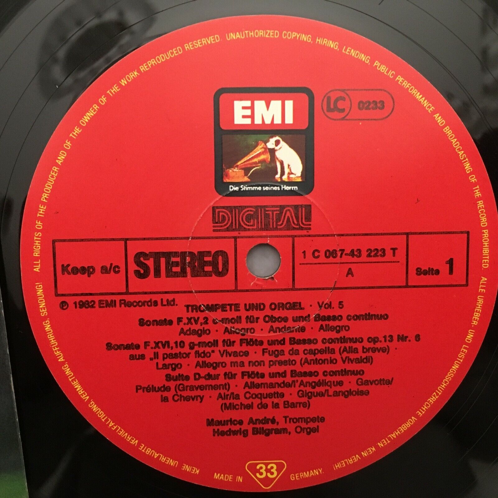 S354 Trumpet & Organ Vol.5 Andre Bilgram EMI 1C 067-43 223 T Digital Stereo