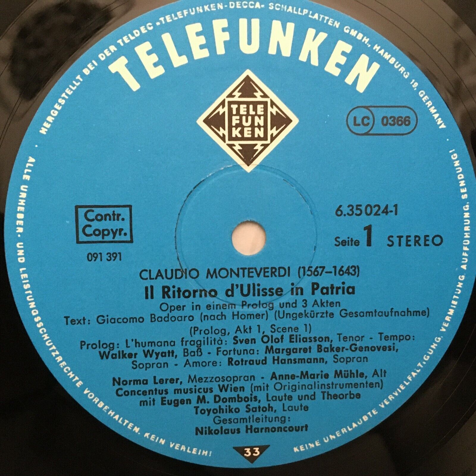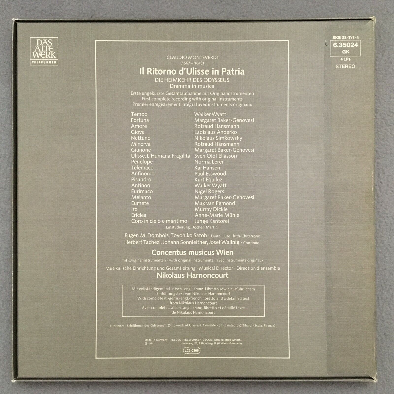 C435 Monteverdi Return of Odysseus Harnoncourt 4LP Telefunken 6.35024 GK Stereo