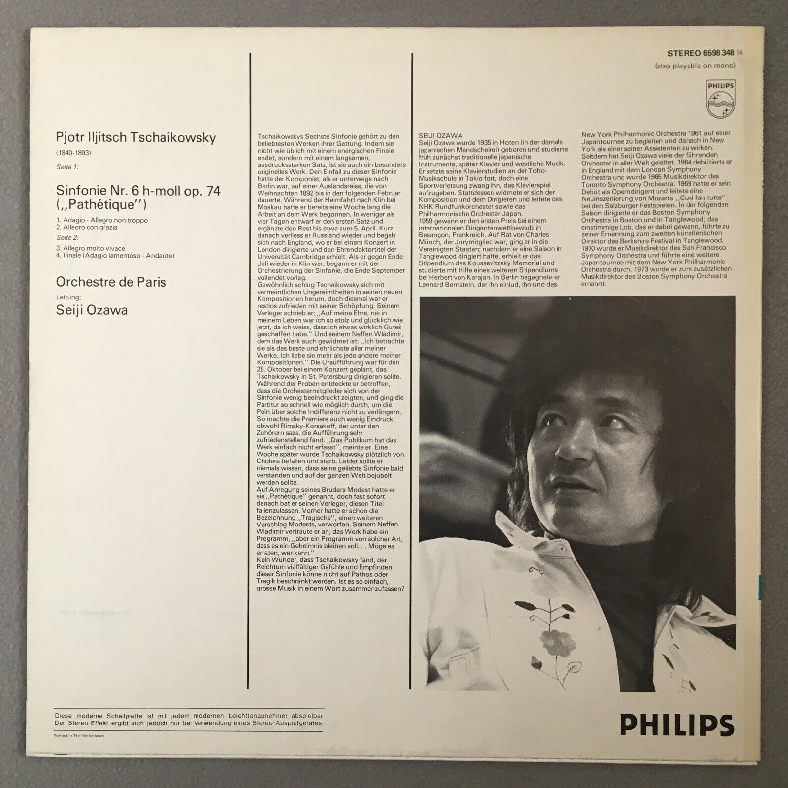 S752 Tchaikovsky Symphony No.6 Ozawa Philips 6598 348 Stereo