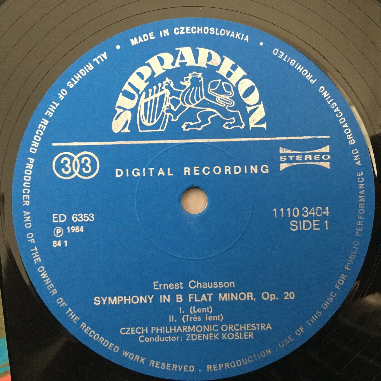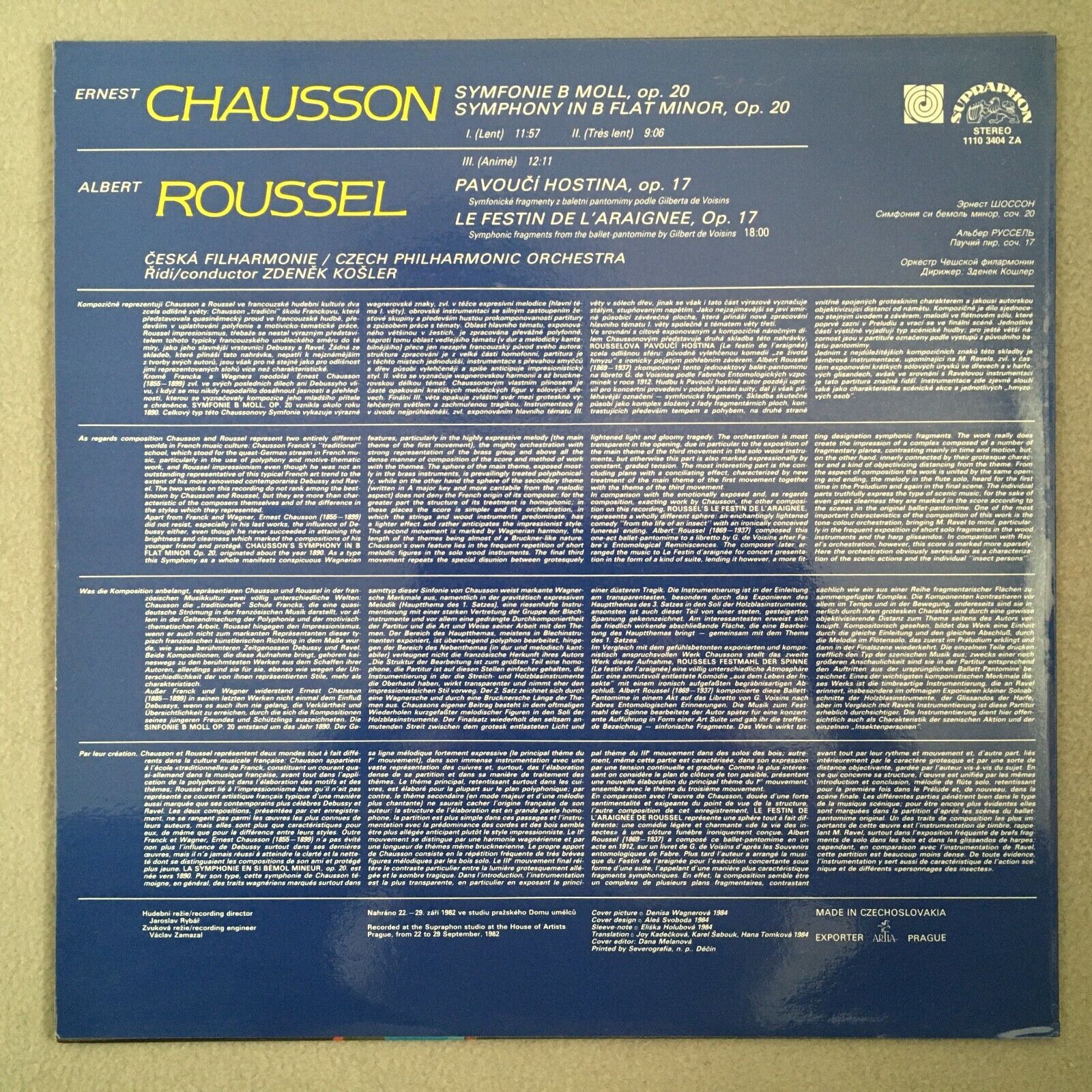 S746 Chausson Symphony Roussel Kosler Supraphon 1110 3404 ZA Digital Stereo