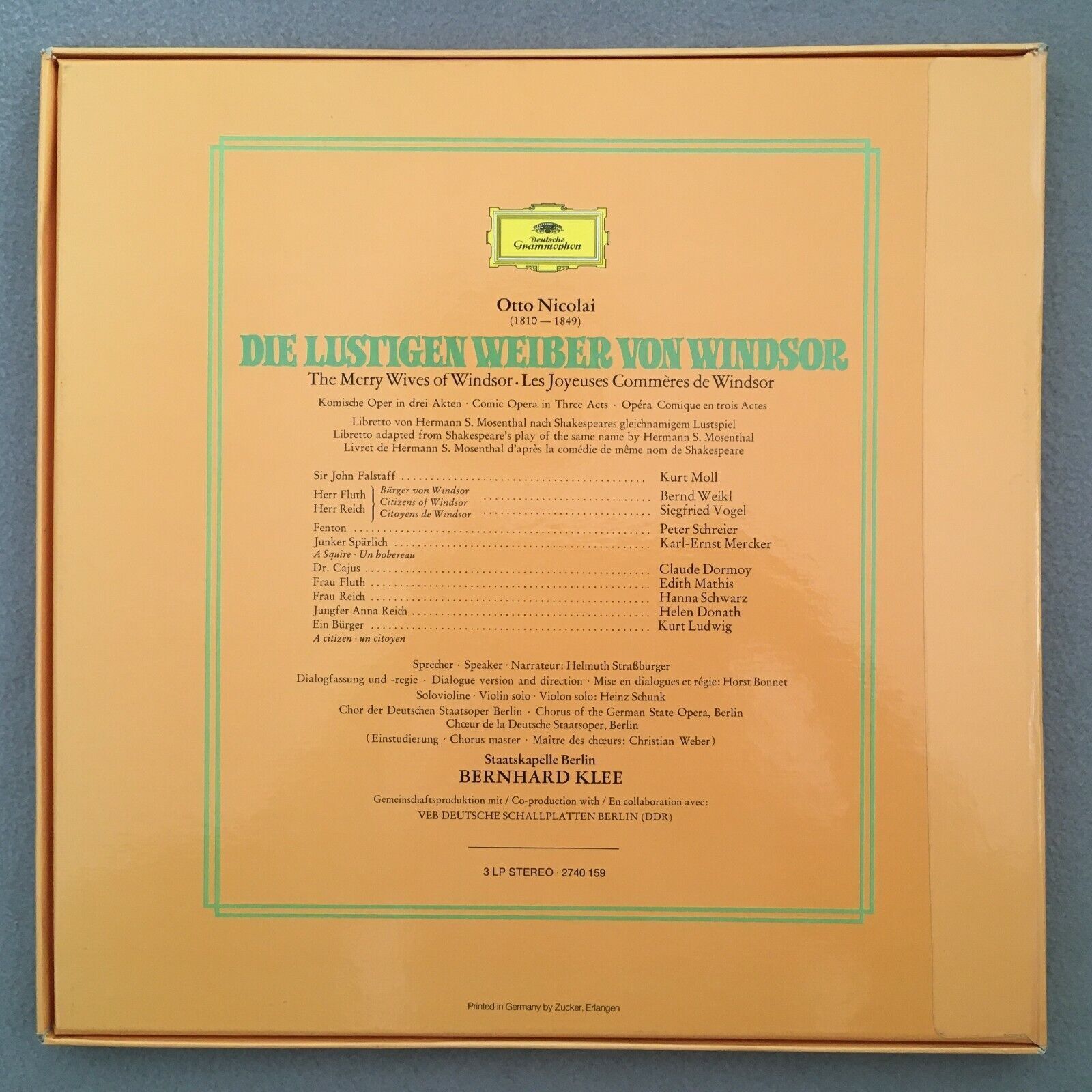 C299 Nicolai The Merry Wives of Windsor Donath Mathis Klee 3LP DGG 2740 159 St