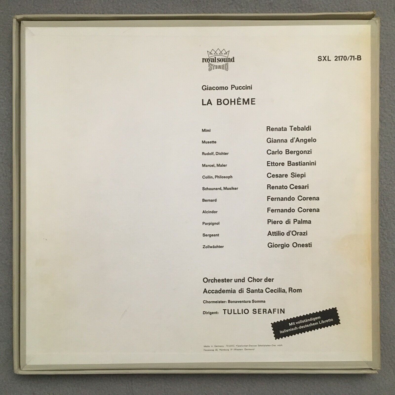 C292 Puccini La Boheme Tebaldi Corena Serafin 2LP DECCA SXL 2170/71-B Stereo