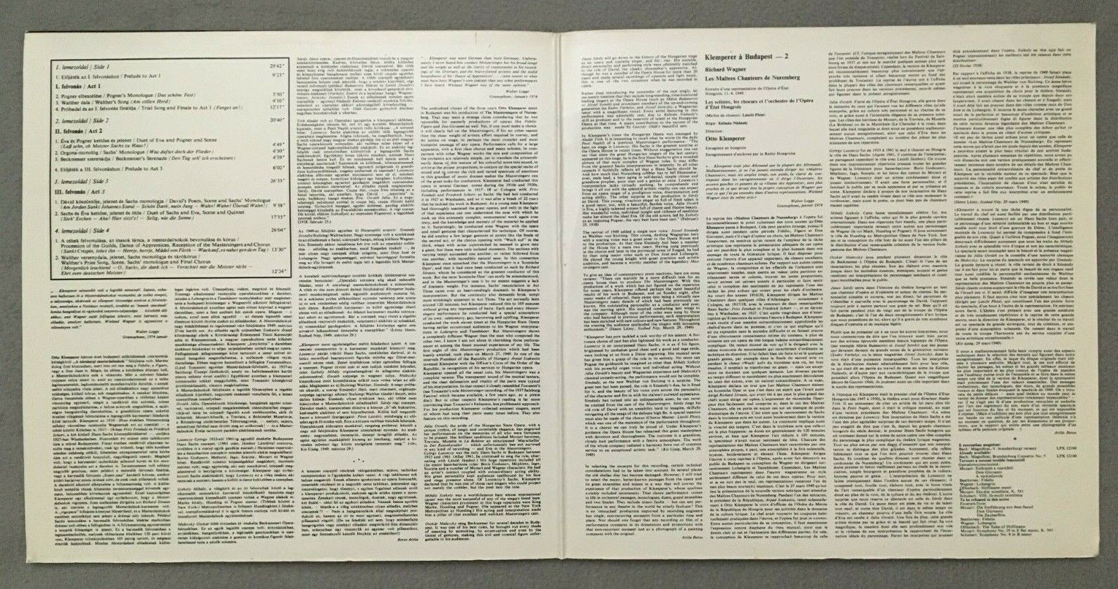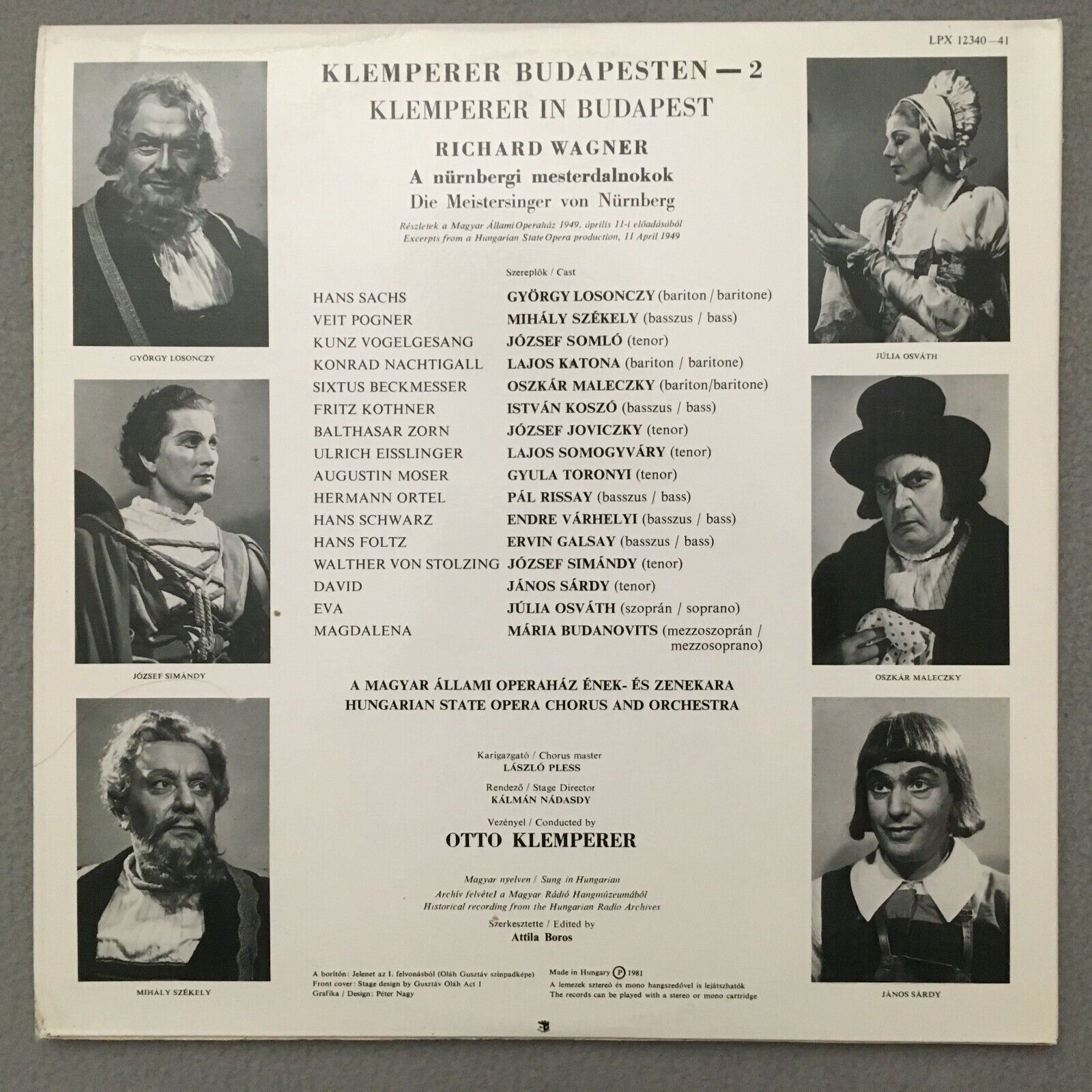 S194 Wagner Meistersinger von Nürnberg Klemperer 2LP Hungaroton LPX 123 40-41