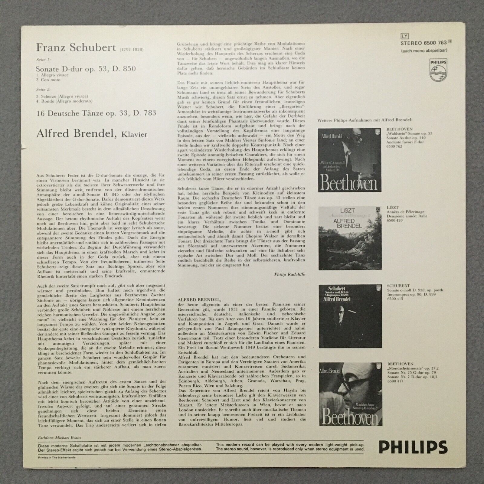 S192 Schubert Sonata 16 German Dances Brendel Piano Philips 6500 763 Stereo