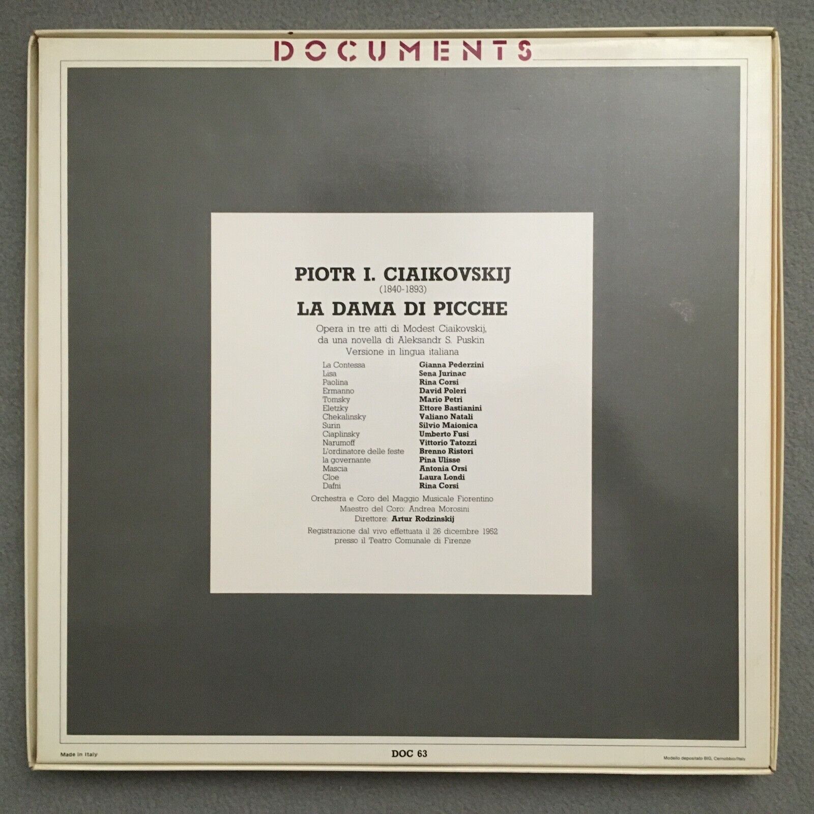 C286 Tchaikovsky La Dama di Picche Bastianini Rodzinskij 3LP Fonit Cetra DOC 63