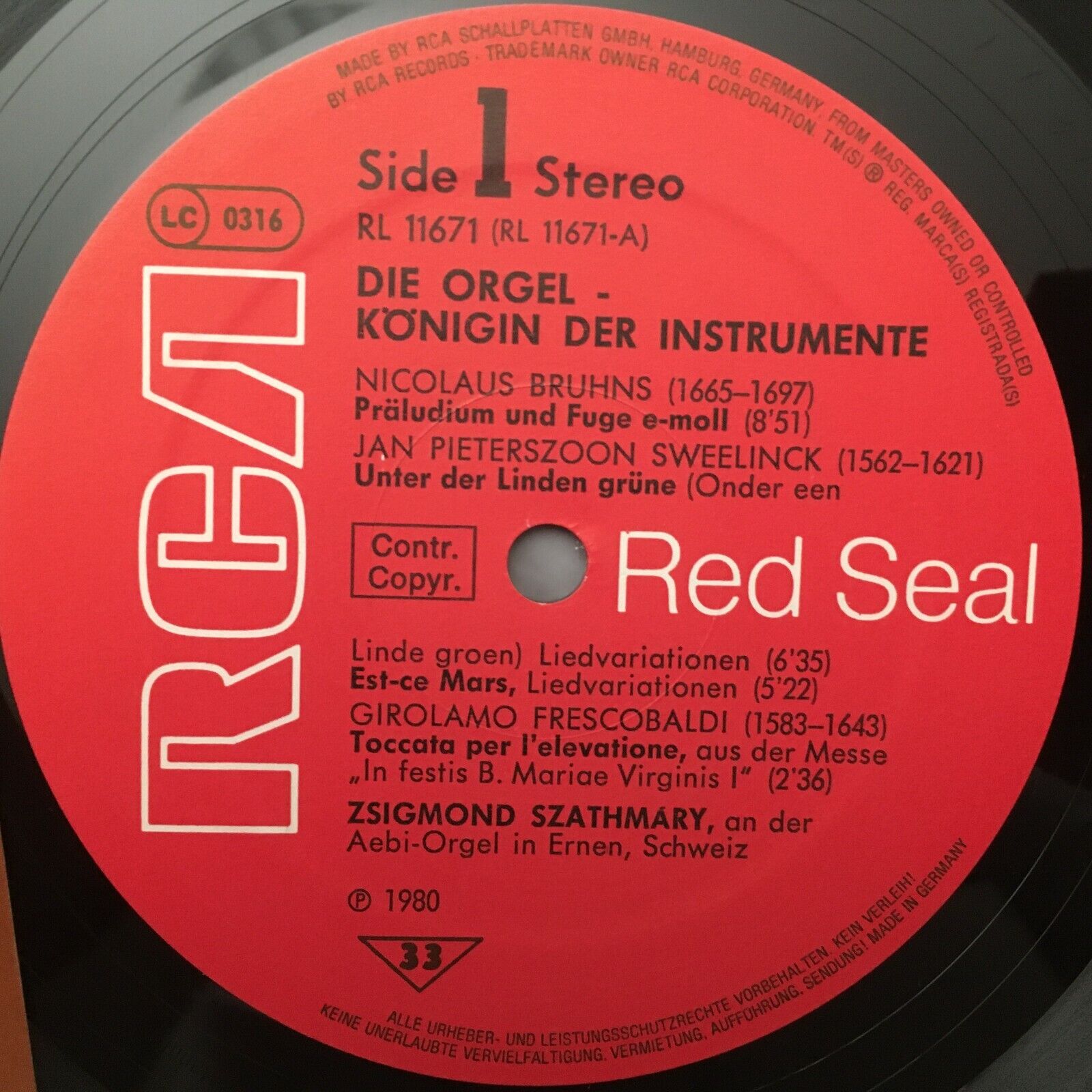 S189 The Organ Bruhns Bach Preludes & Fugue Szathmary RCA RL 11674 AW Stereo