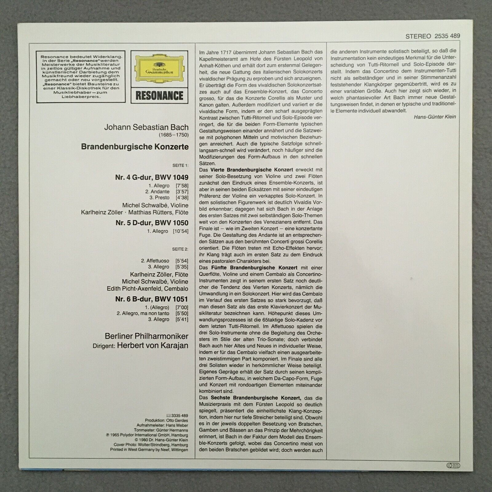 S345 Bach Brandenburg Concertos No.4 & 5 & 6 Karajan DGG 2535 489 Stereo