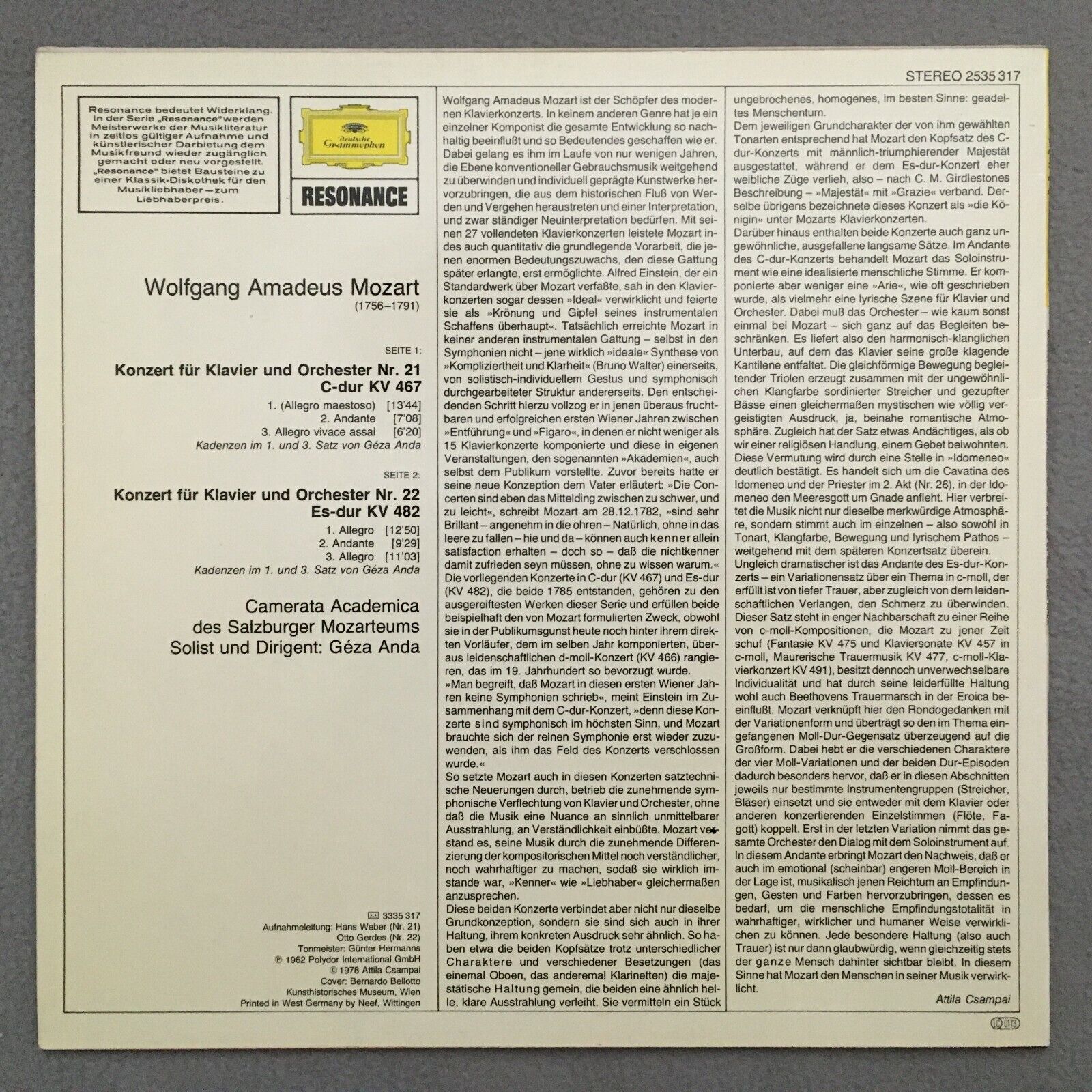 S344 Mozart Piano Concertos No.21 & No.22 Anda DGG 2535 317 Stereo