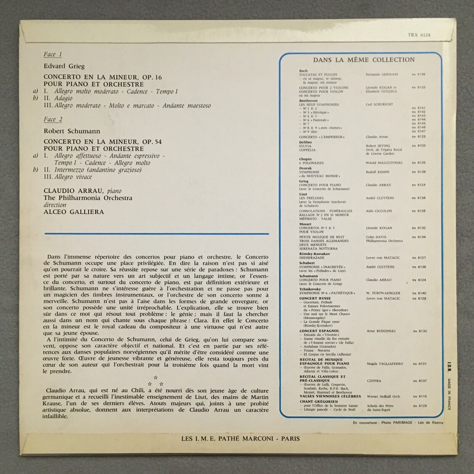 S737 Schumann Grieg Piano Concertos Arrau Galliera Trianon TRX 6124