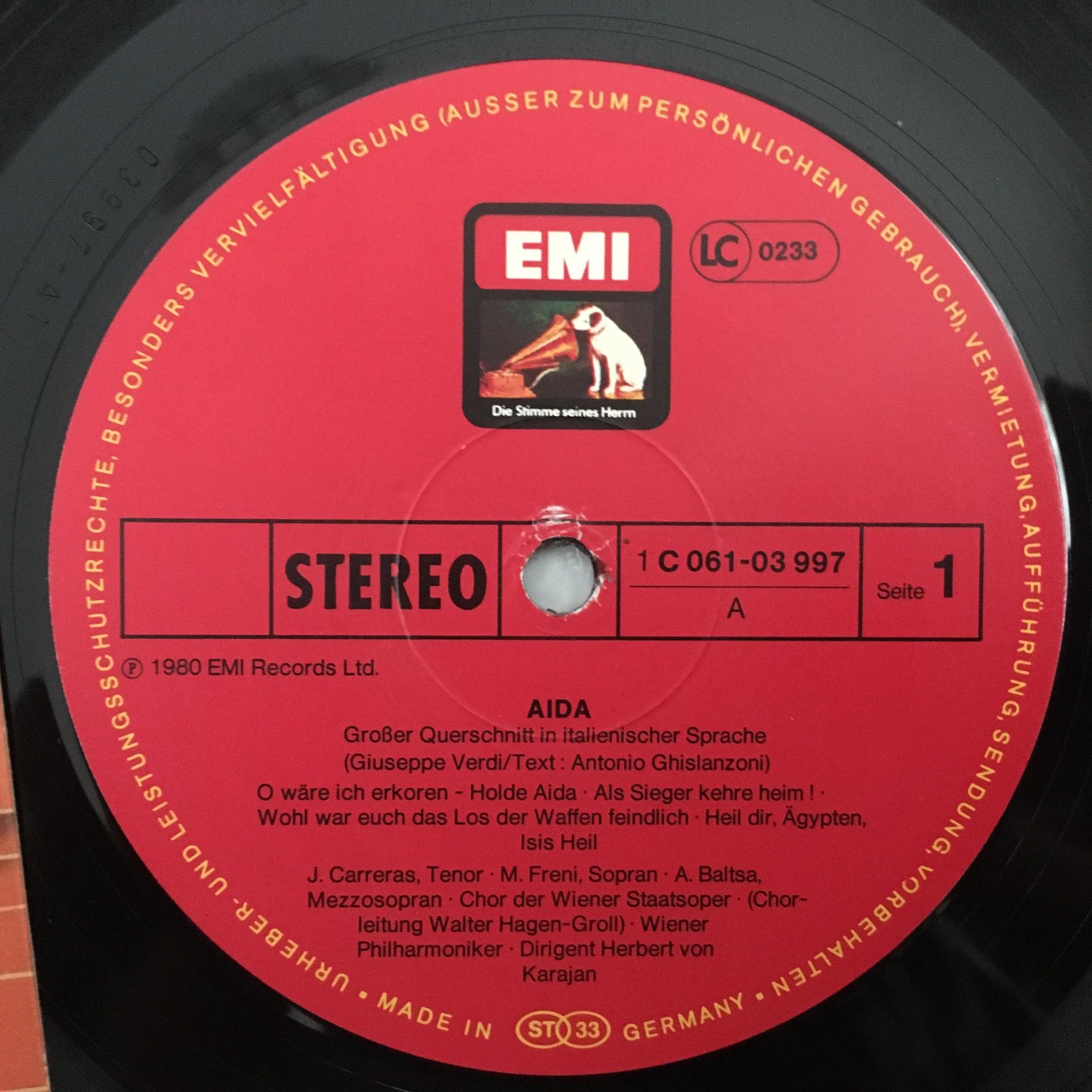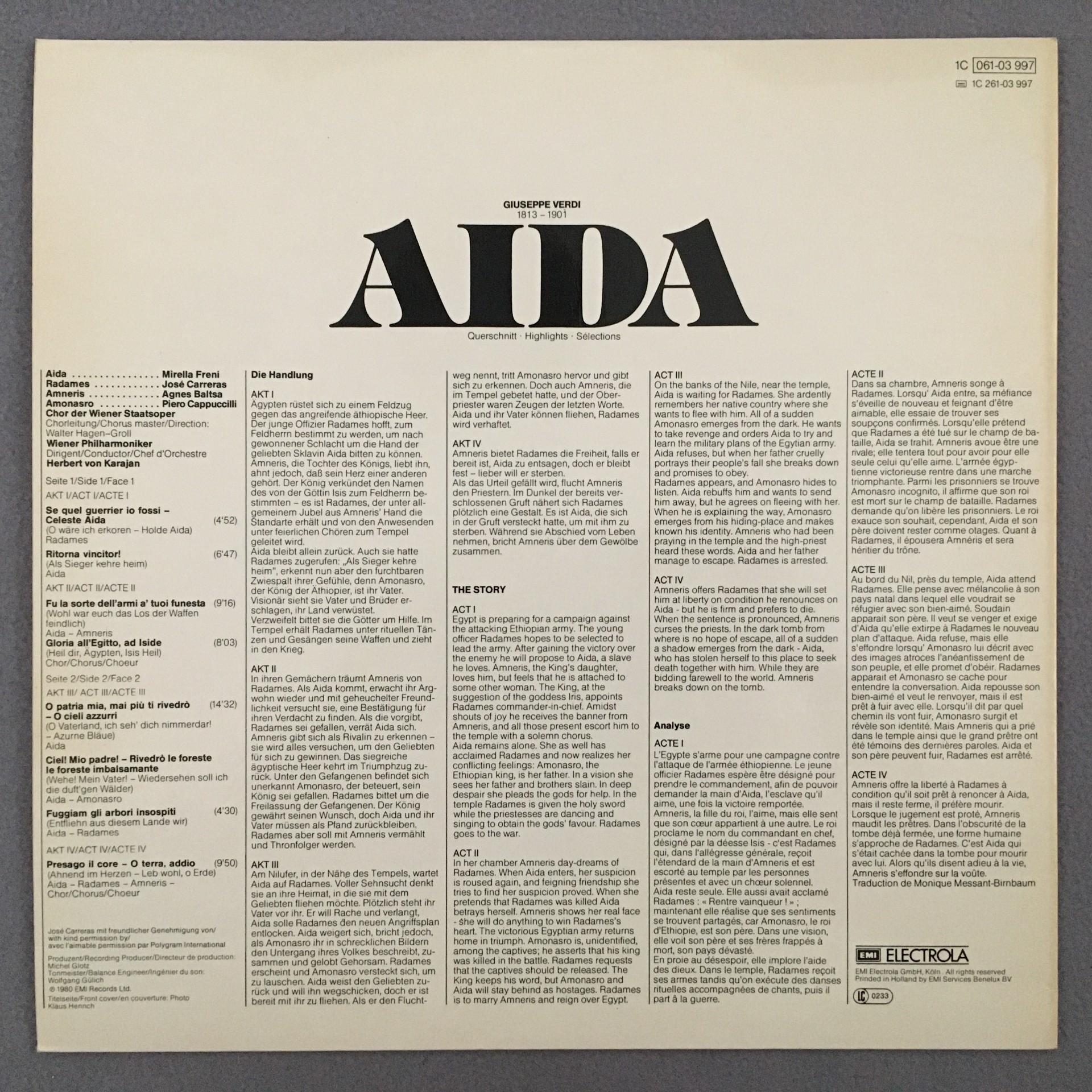 N475 Verdi Aida Baltsa Freni Carreras Karajan VPO EMI 1C 161-03 997 Stereo