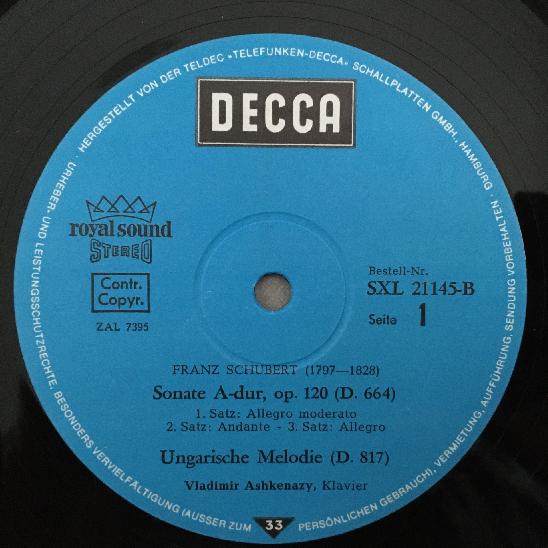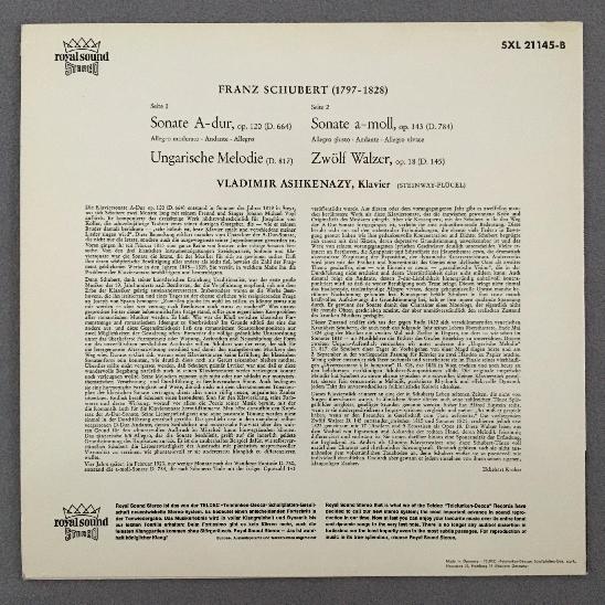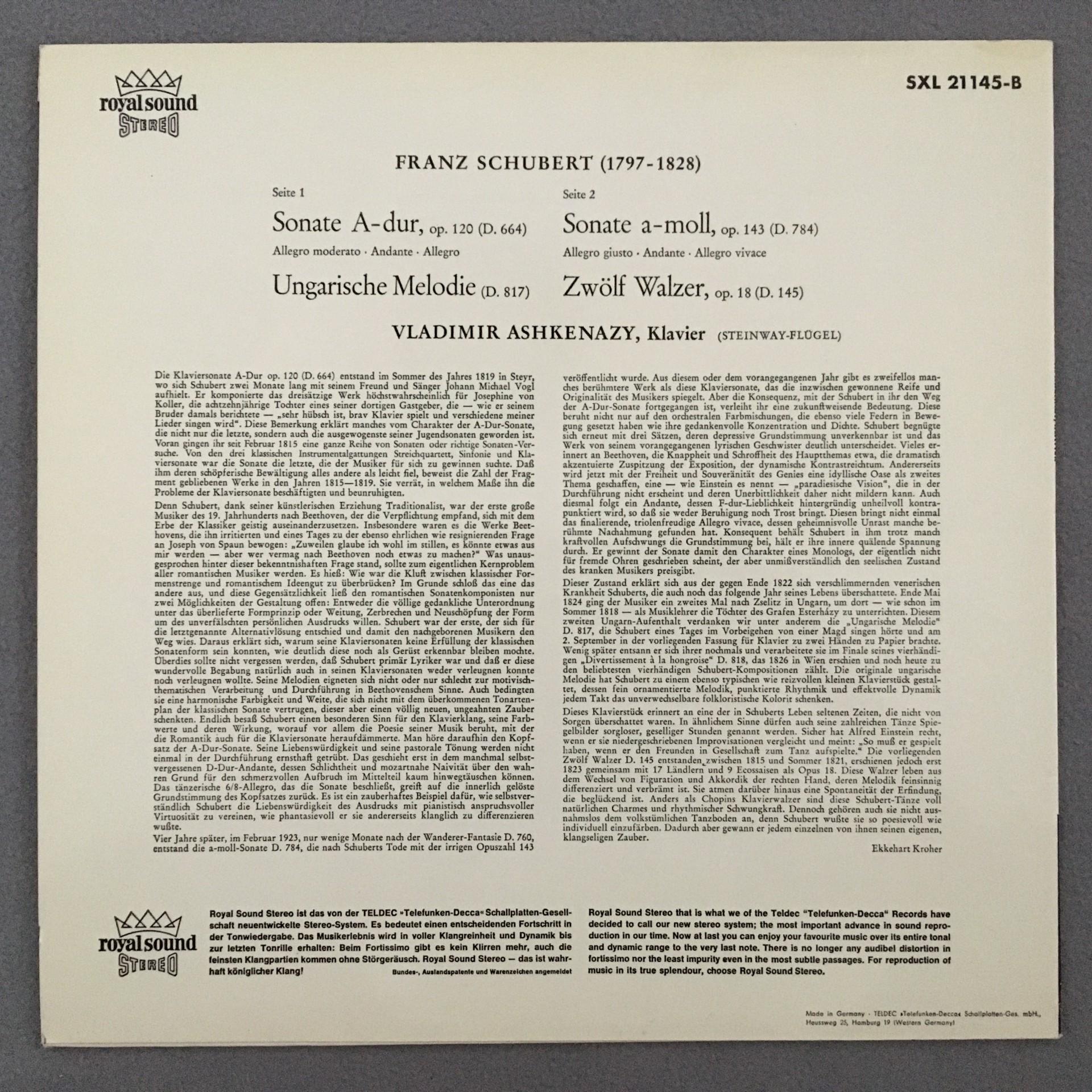 N477 Schubert Sonatas 12 Waltzes Ashkenazy DECCA SXL 21 145-B Stereo