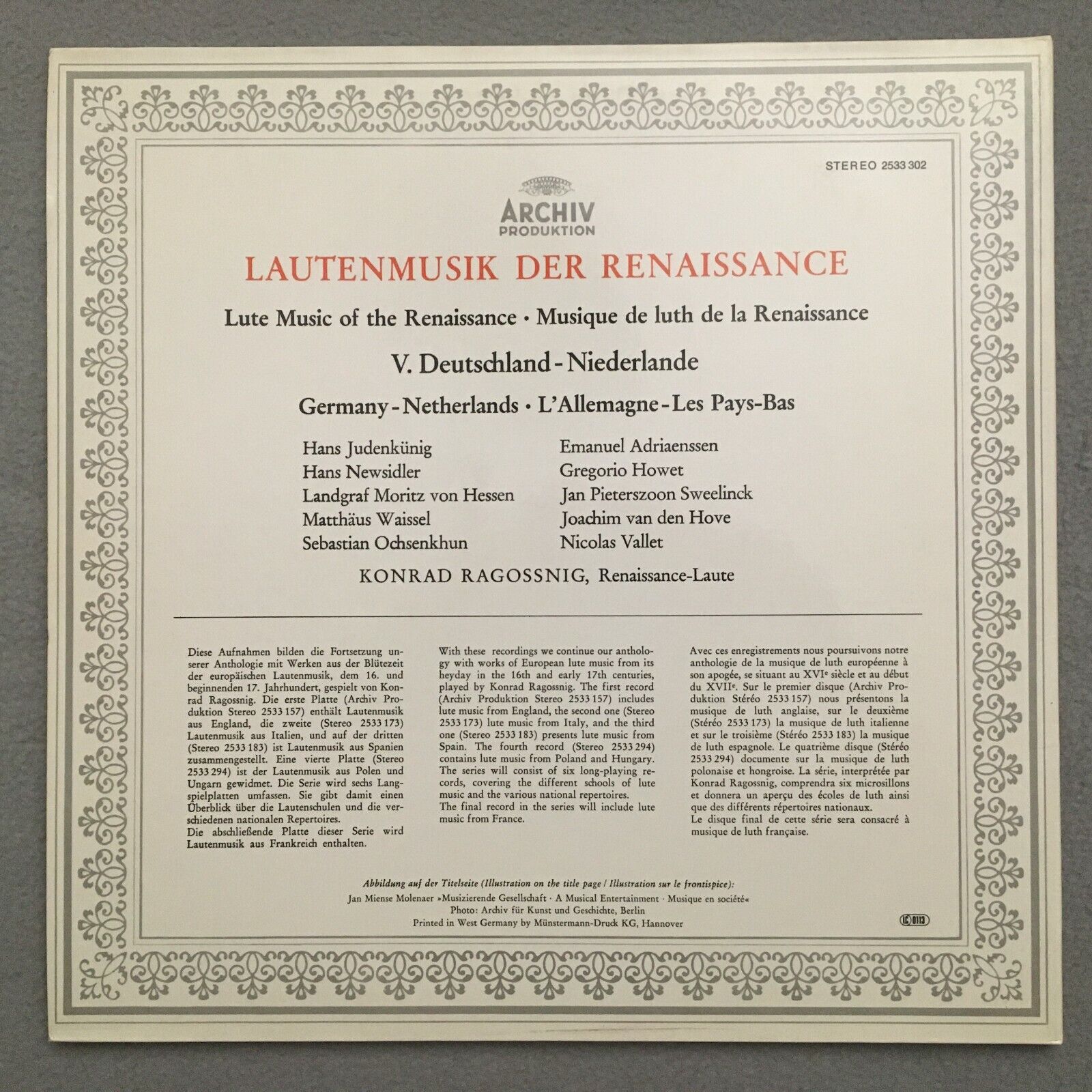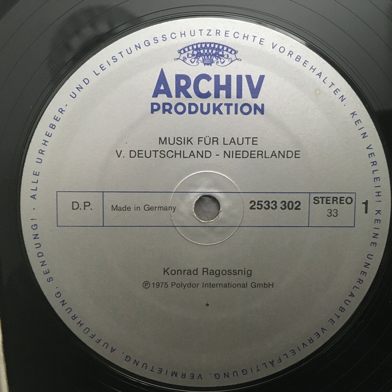 S019 Music for Lute Ragossnig Germany Netherlands DGG Archiv 2533 302 Stereo