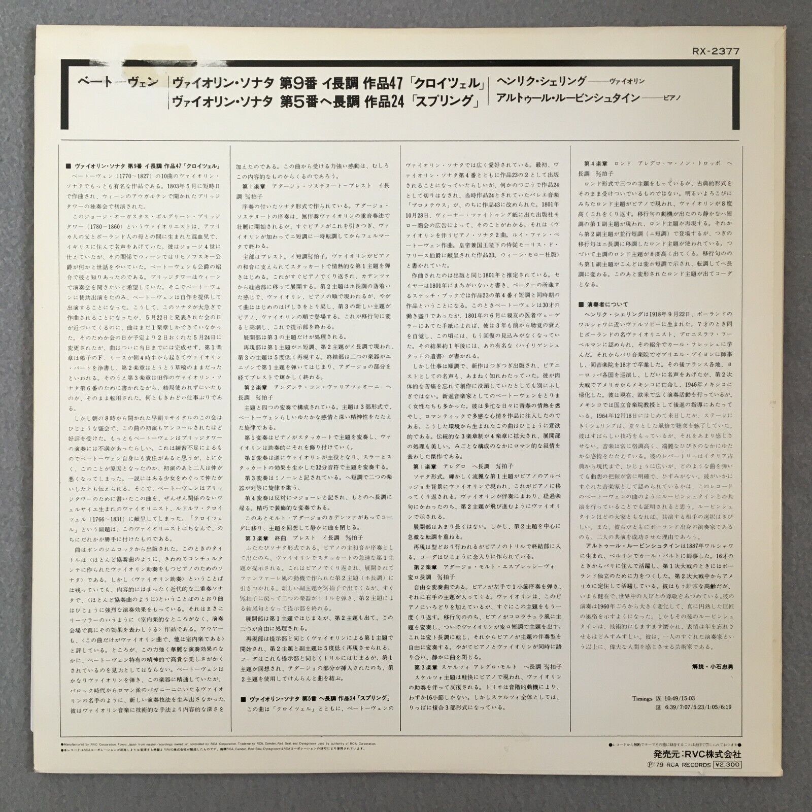 S335 Beethoven Violin Sonatas Rubinstein Szeryng RCA RX-2377 Stereo