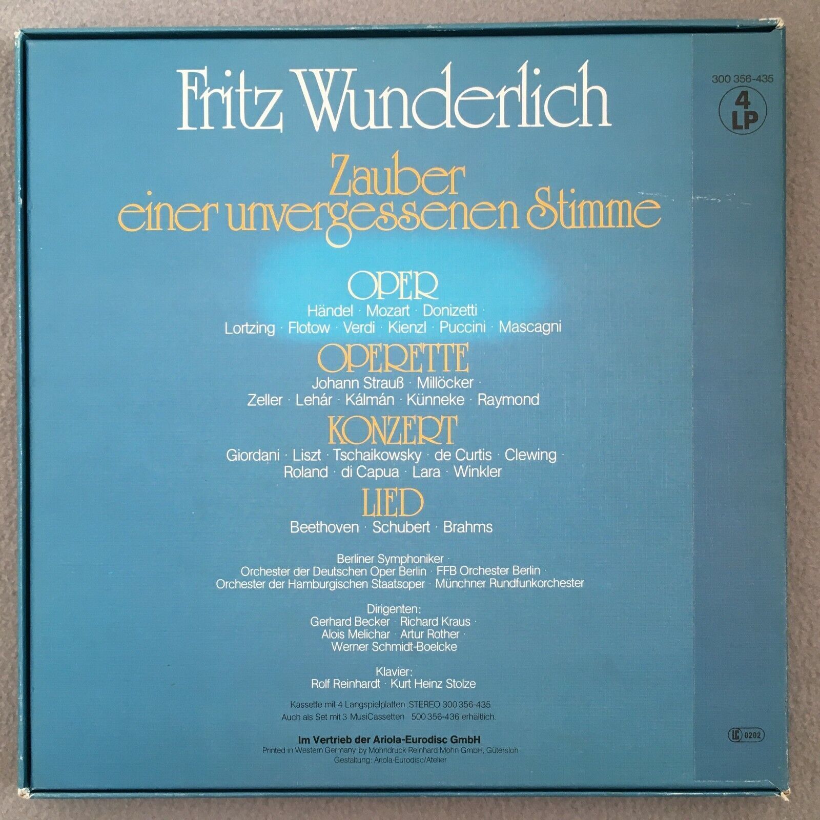 C429 Wunderlich Opera Handel Mozart Concert Song 4LP Eurodisc 300 356-435 Stereo