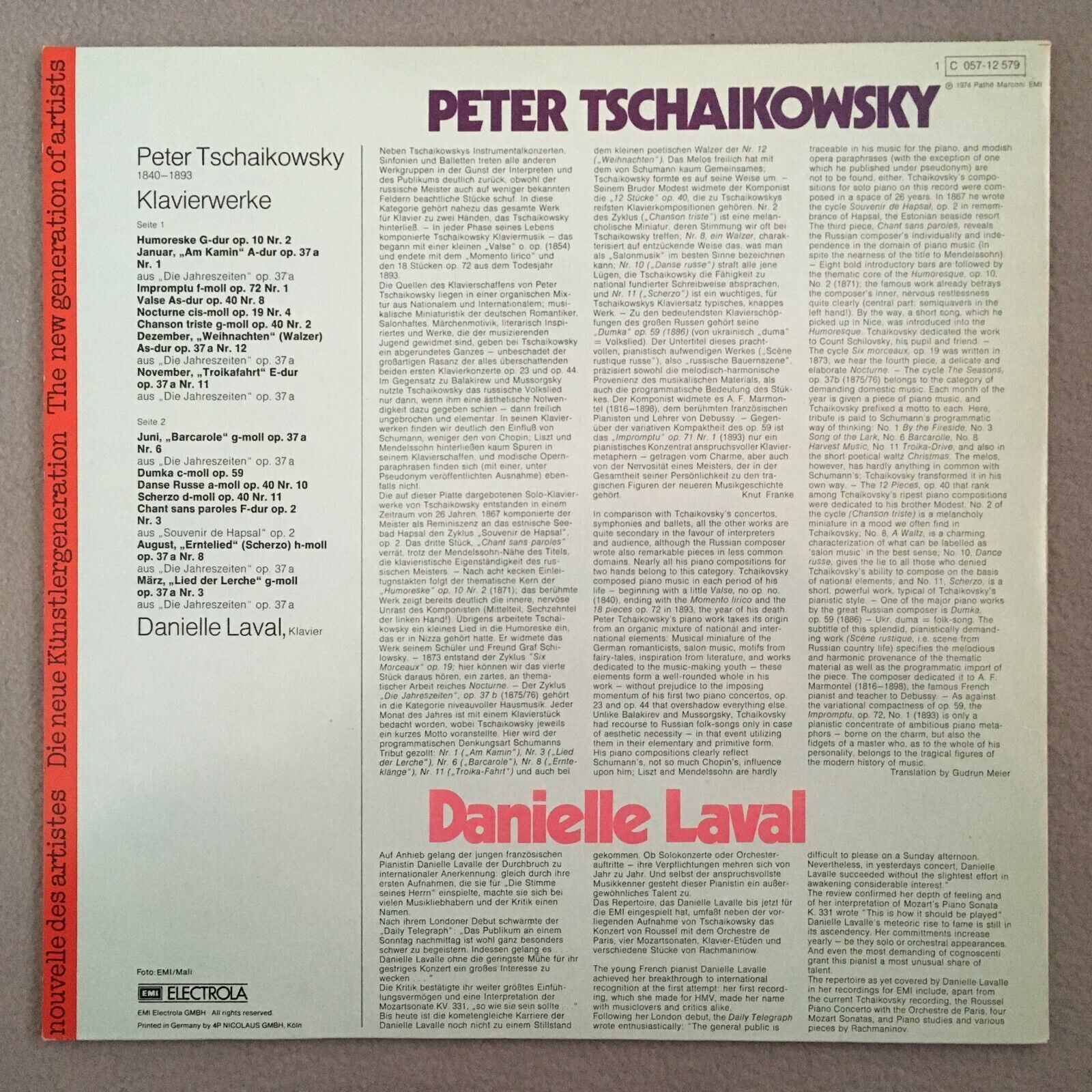 X850 Tchaikovsky Piano Works Danielle Laval EMI 1 C 057-12 579 Stereo