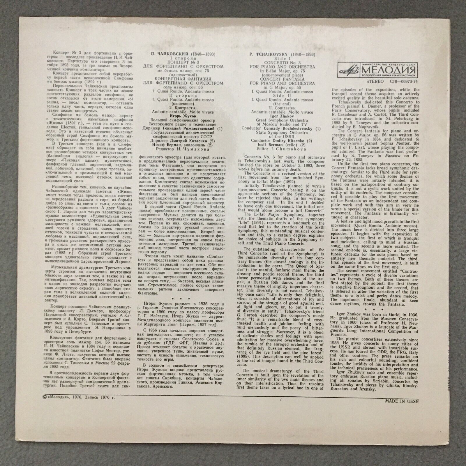 S332 Tchaikovsky Concerto No.3 Fantasy Zhukov Yenko Melodiya C10-06973-4 Stereo