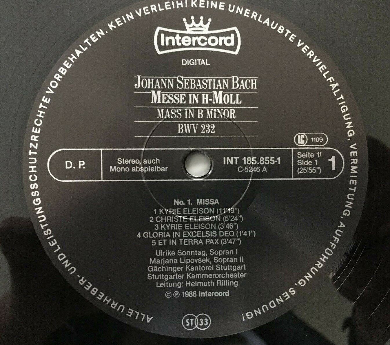 G150 Bach Mass in B-Minor BWV 232 Rilling 2LP Intercord INT 185.855 Digital Ster