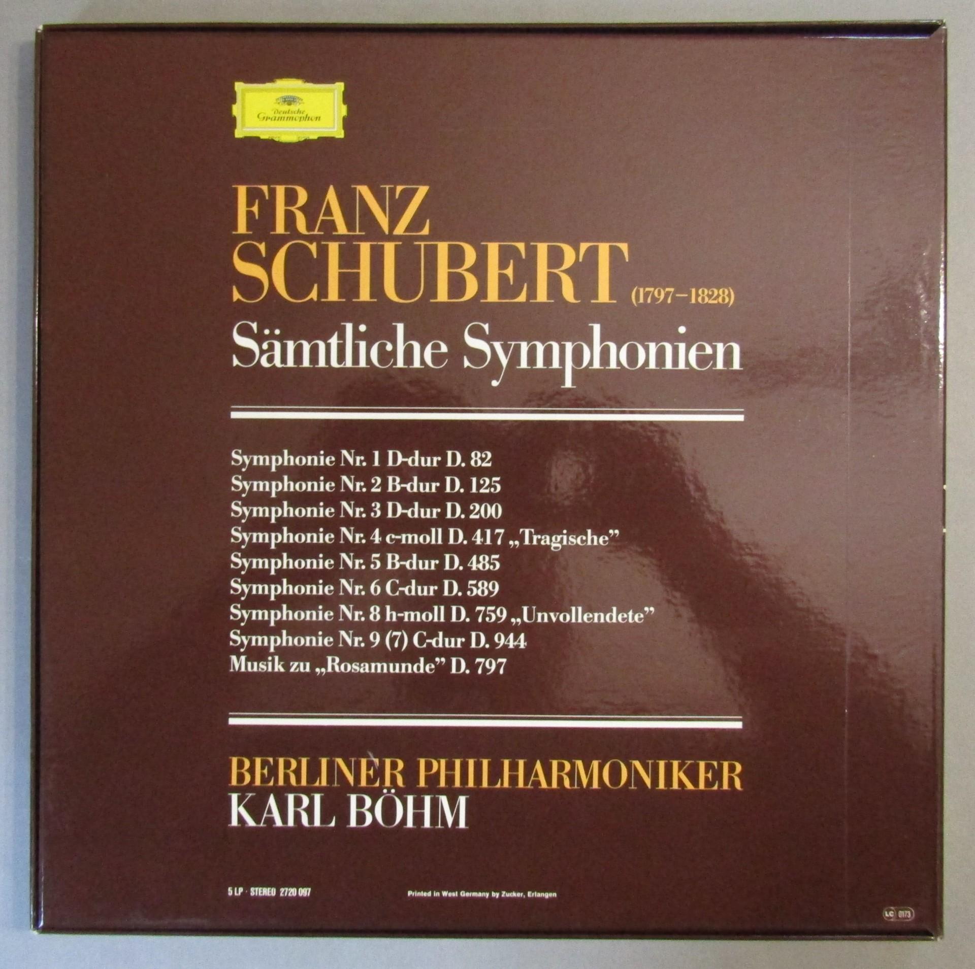 G161 Schubert Complete Symphonies Bohm BPO 5LP DGG 2720 097 Stereo