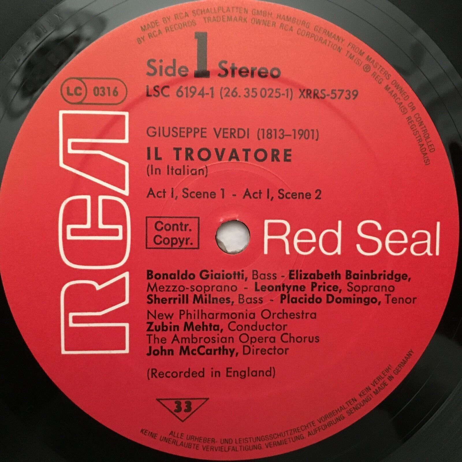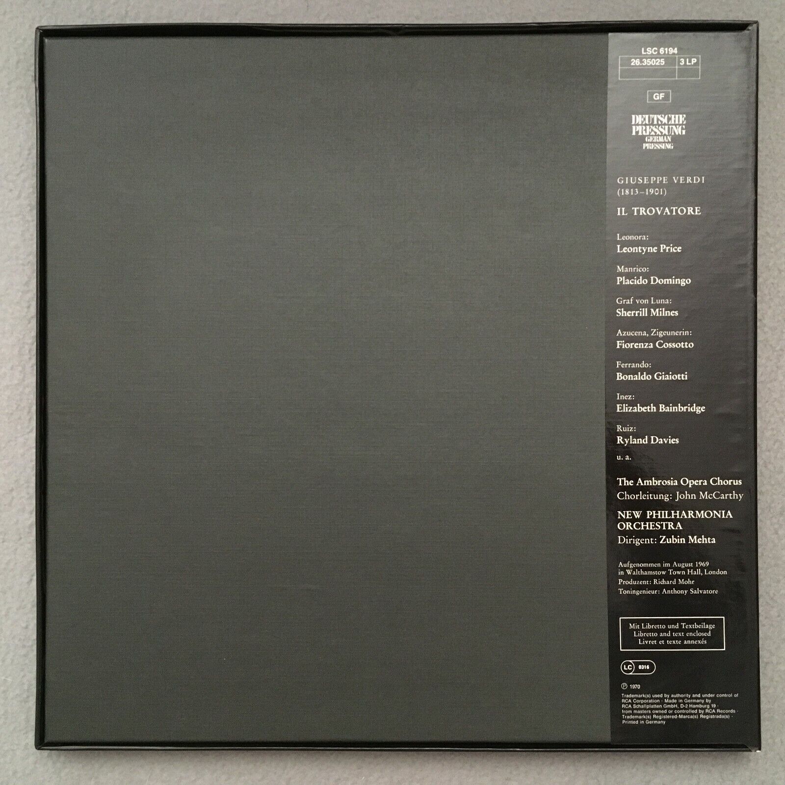 C423 Verdi il Trovatore Price Domingo Milnes Mehta 3LP RCA 26.35025 Stereo