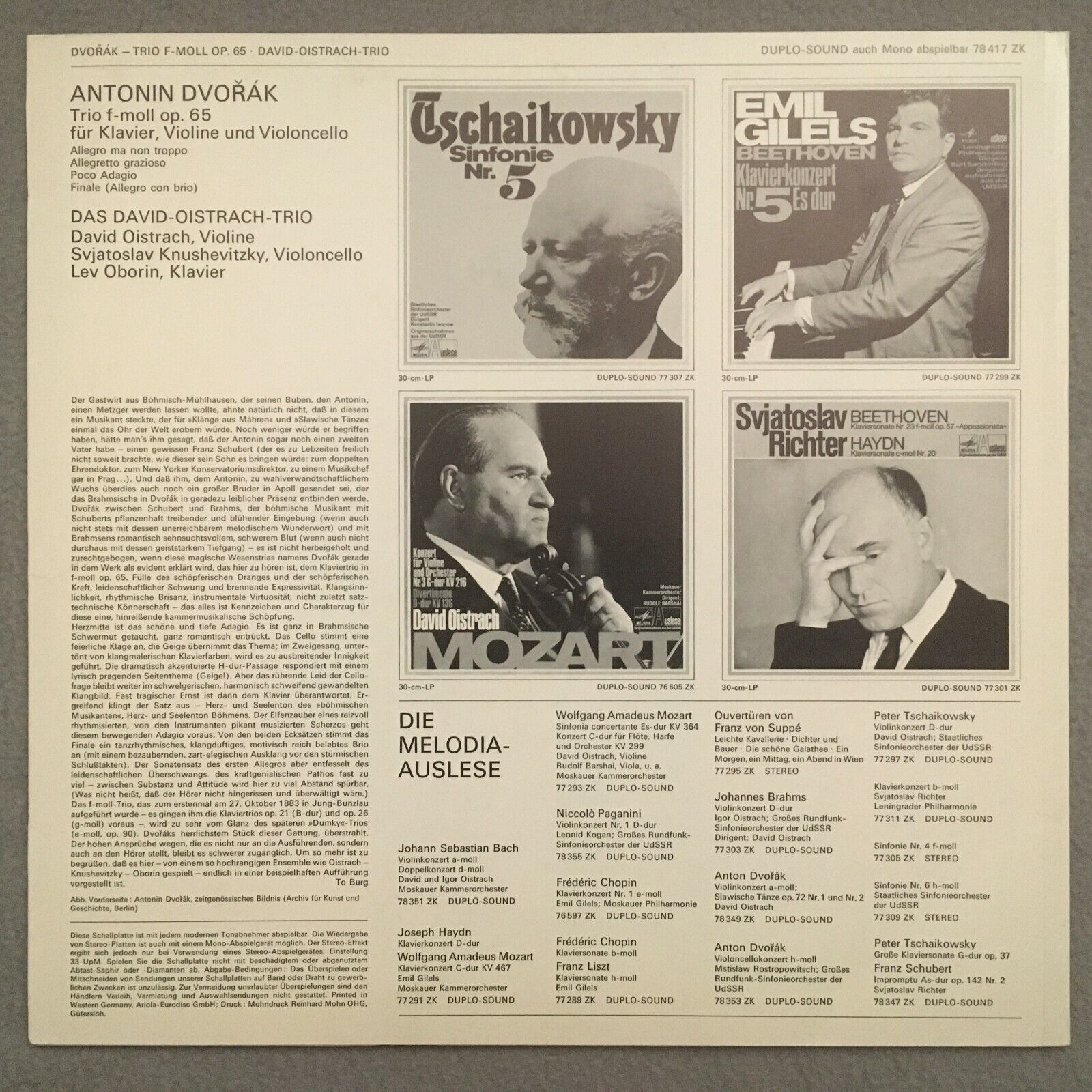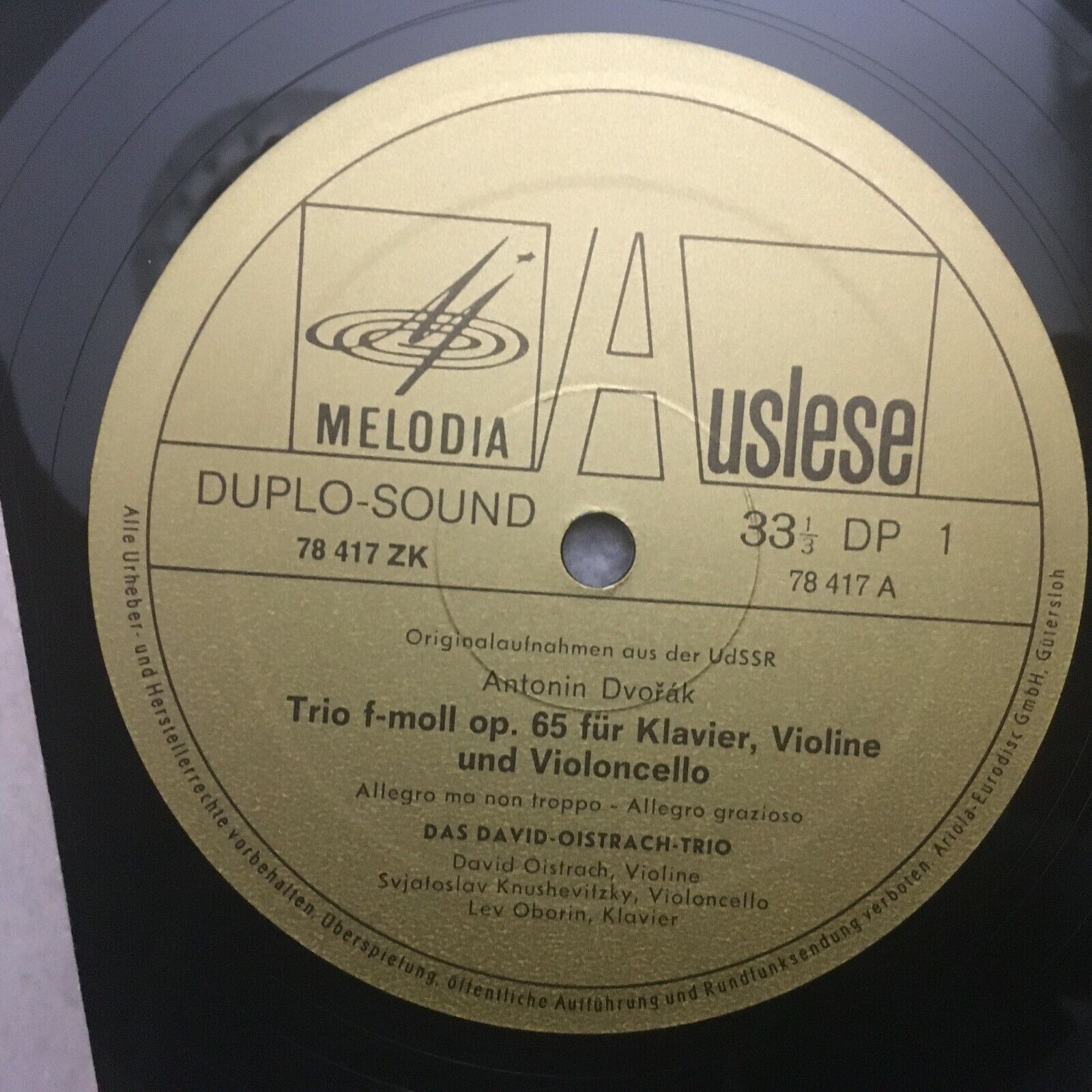 S008 Dvorak Piano Trio Oistrakh Trio Melodiya 78 417 ZK Duplo-Sound
