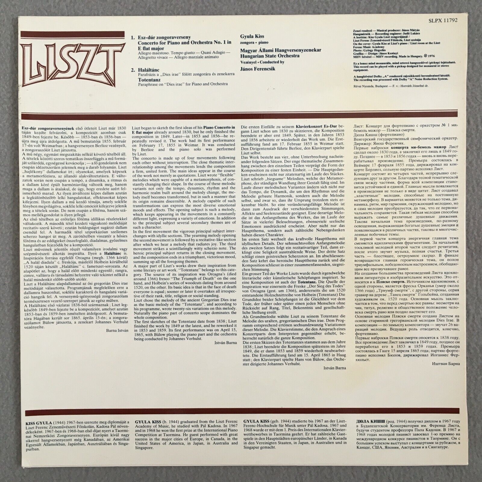 S328 Liszt Piano Concerto Totentanz Kiss Ferencsik Hungaroton SLPX 11 792 Stereo