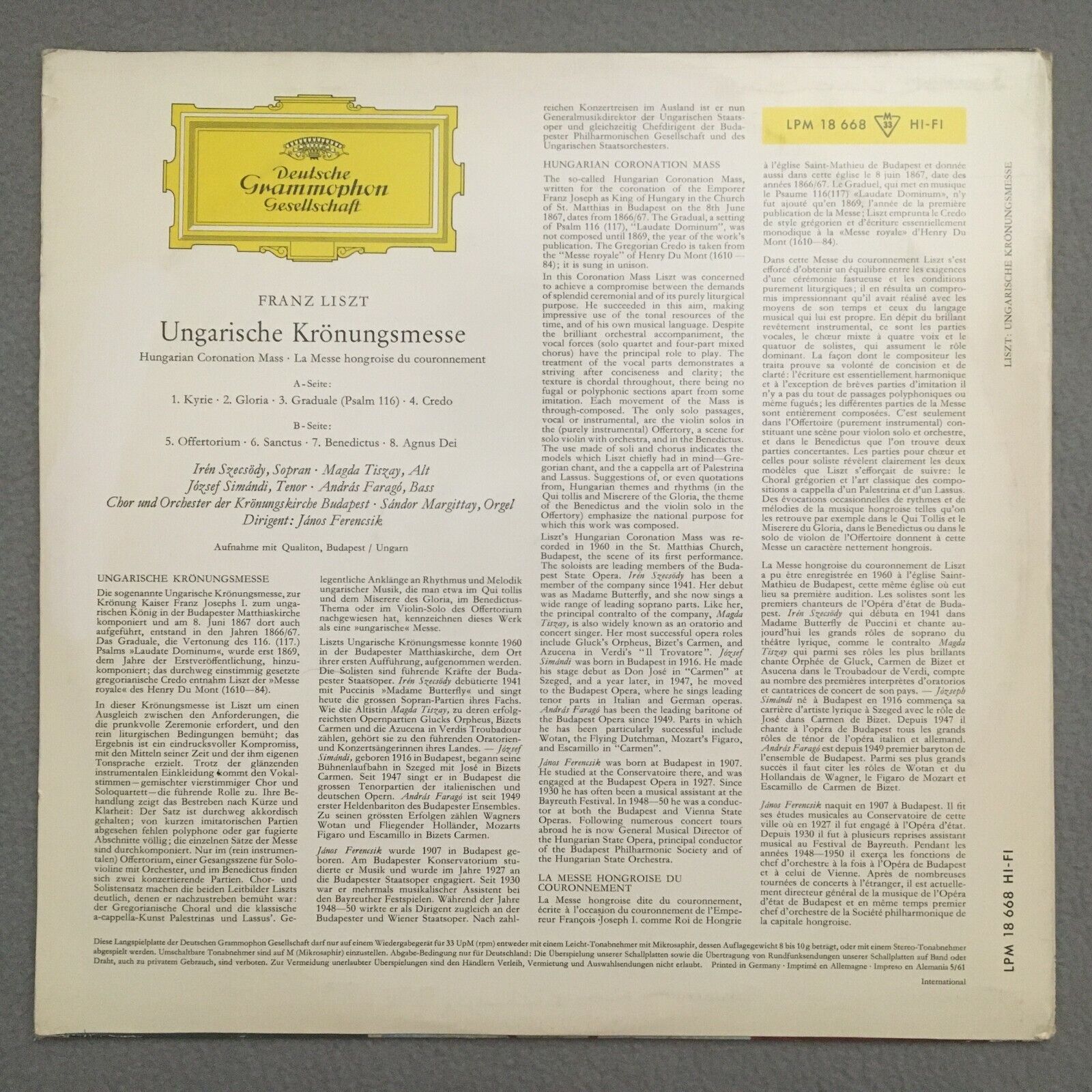 S001 Liszt Hungarian Coronation Mass Szecsödy Ferencsik DGG LPM 18 668 Tulip