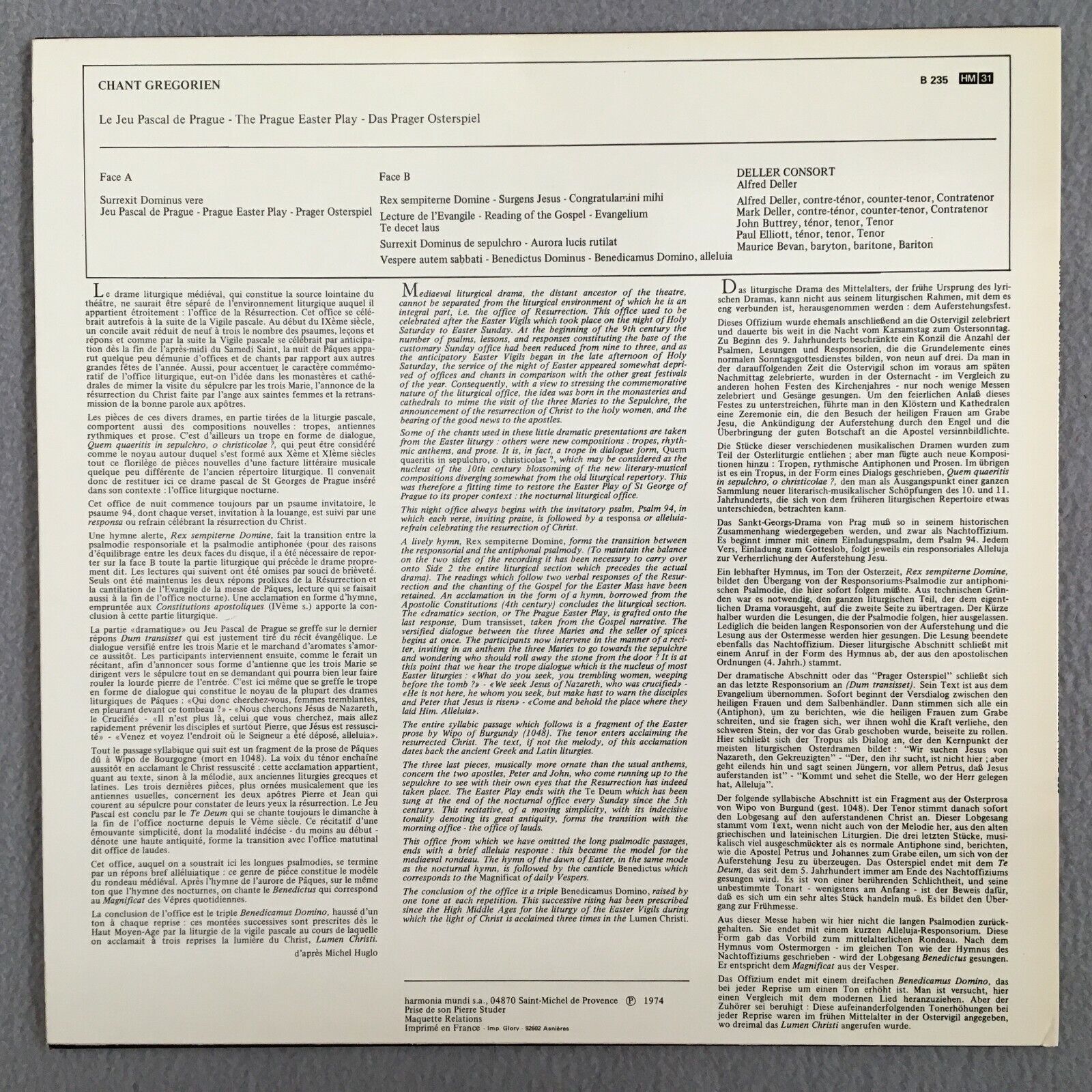 S322 Gregorian Chant Deller Consort Harmonia Mundi France B 235 Black Label