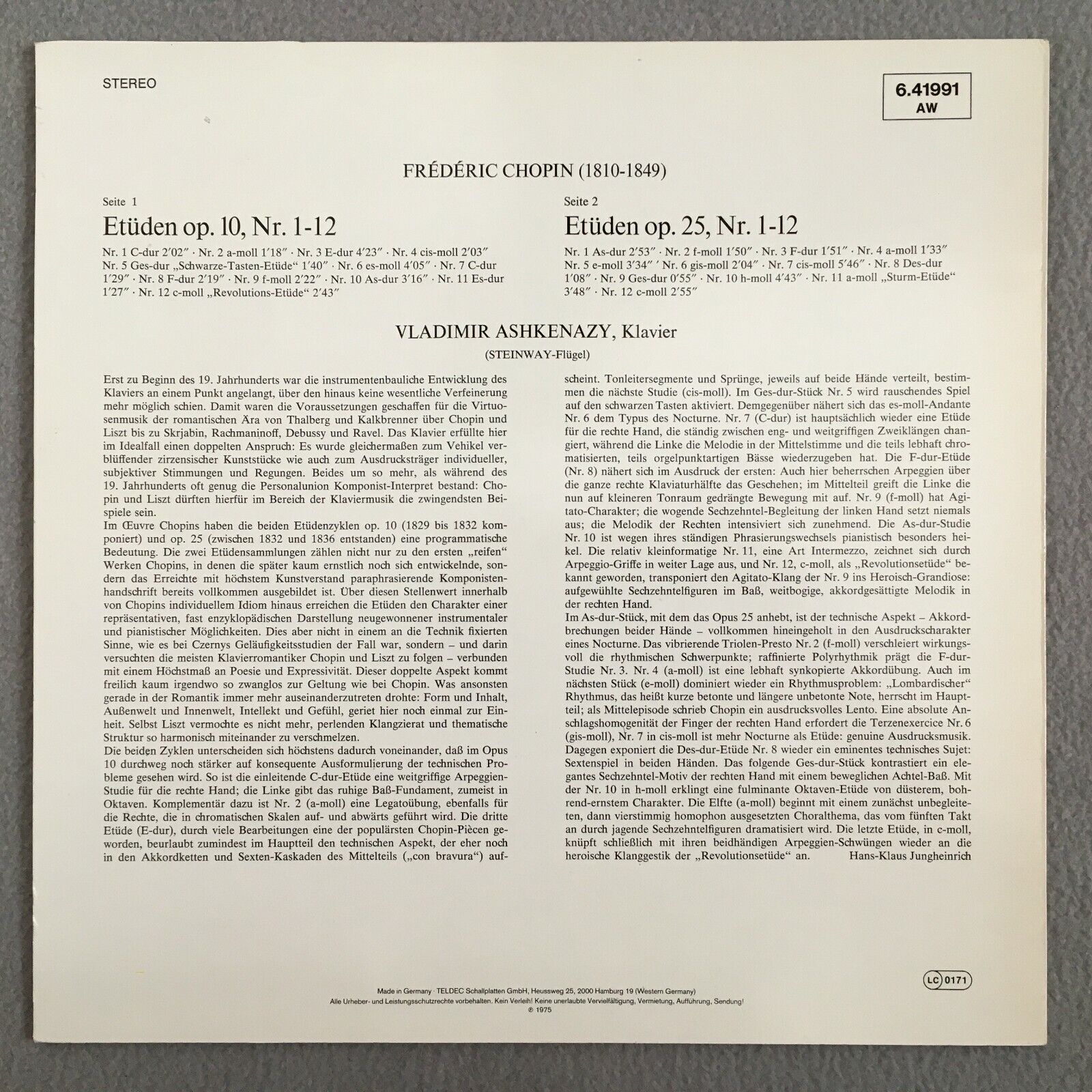 S321 Chopin Etudes Op.10 & Op.25 Ashkenazy Piano DECCA 6.41991 AW Stereo