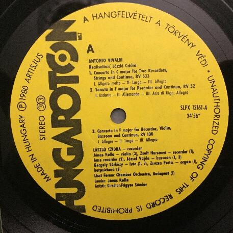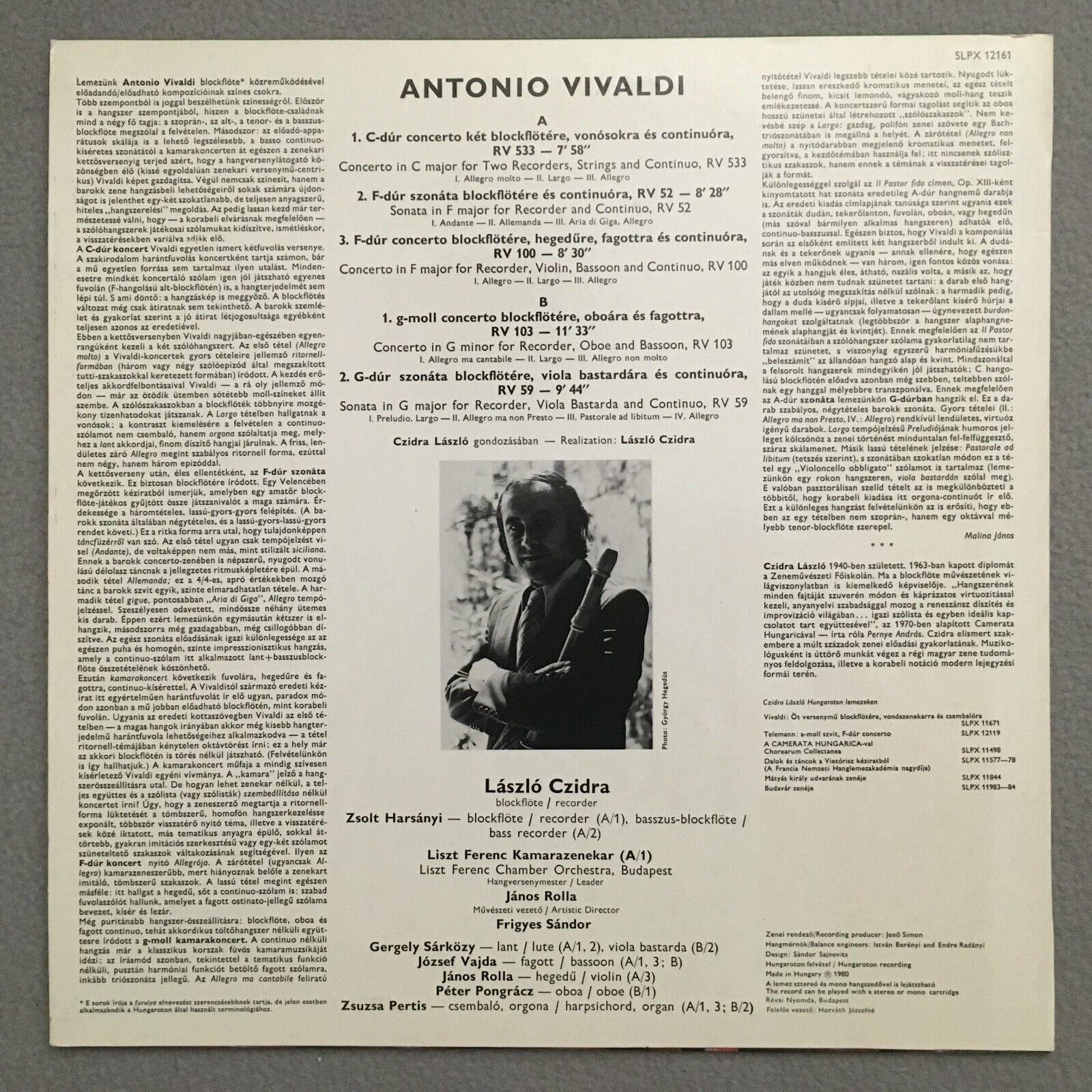 S178 Vivaldi Concertos Sonatas Czidra Recorder Rolla Hungaroton SLPX 12161 St