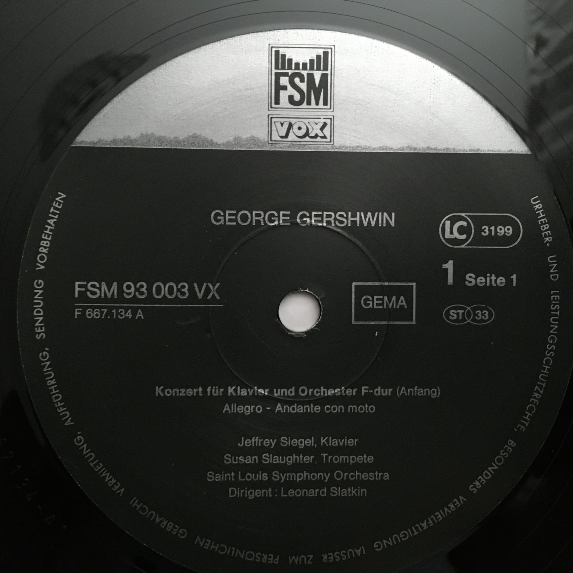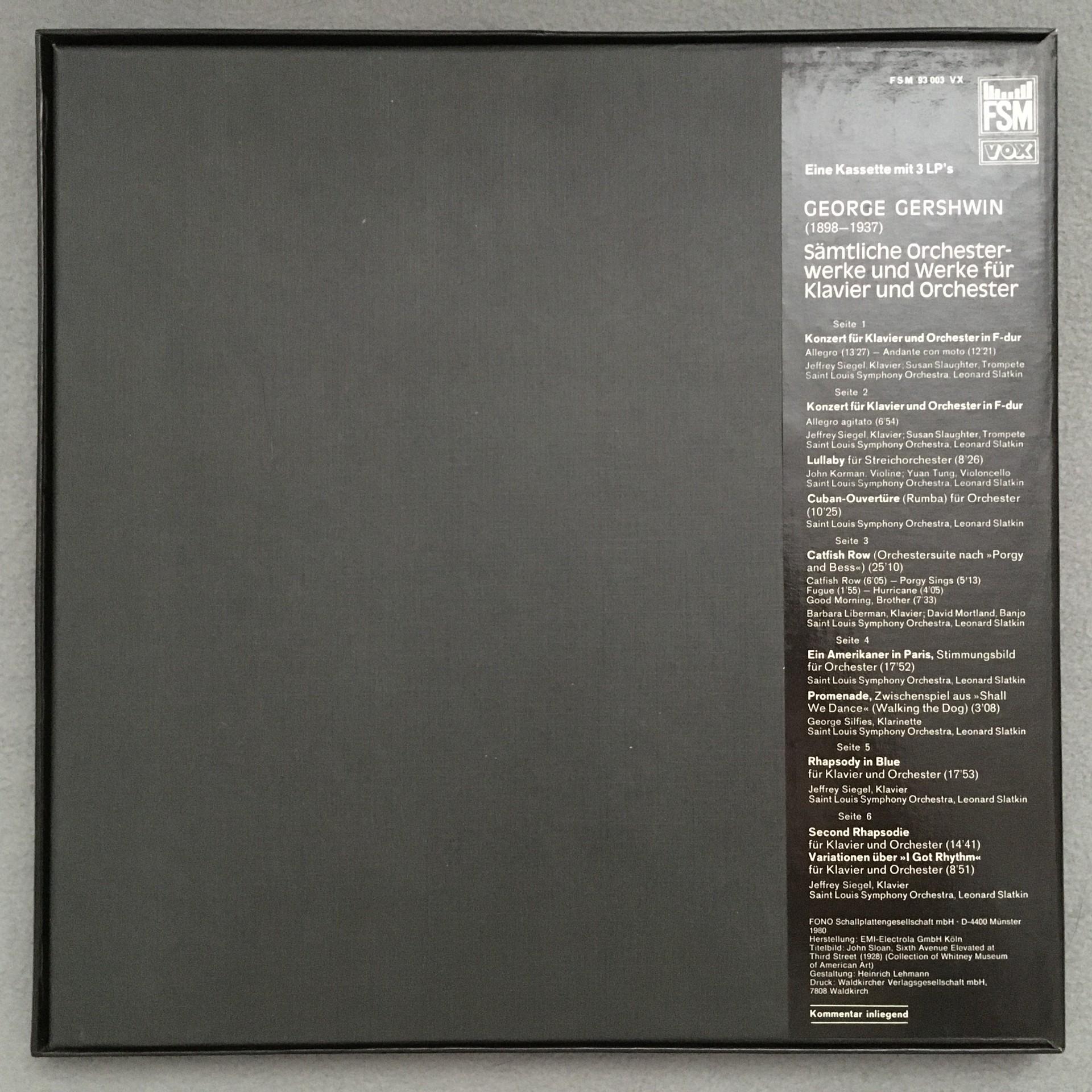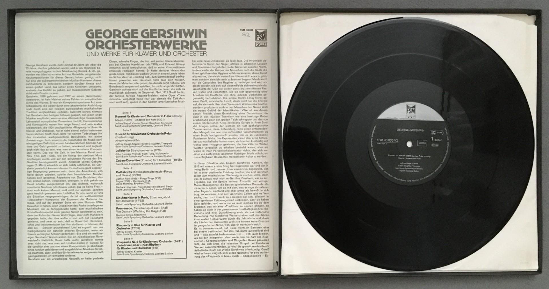 D540 Gershwin Orchestral Works Siegel Slatkin 3LP FSM 93 003 VX Stereo