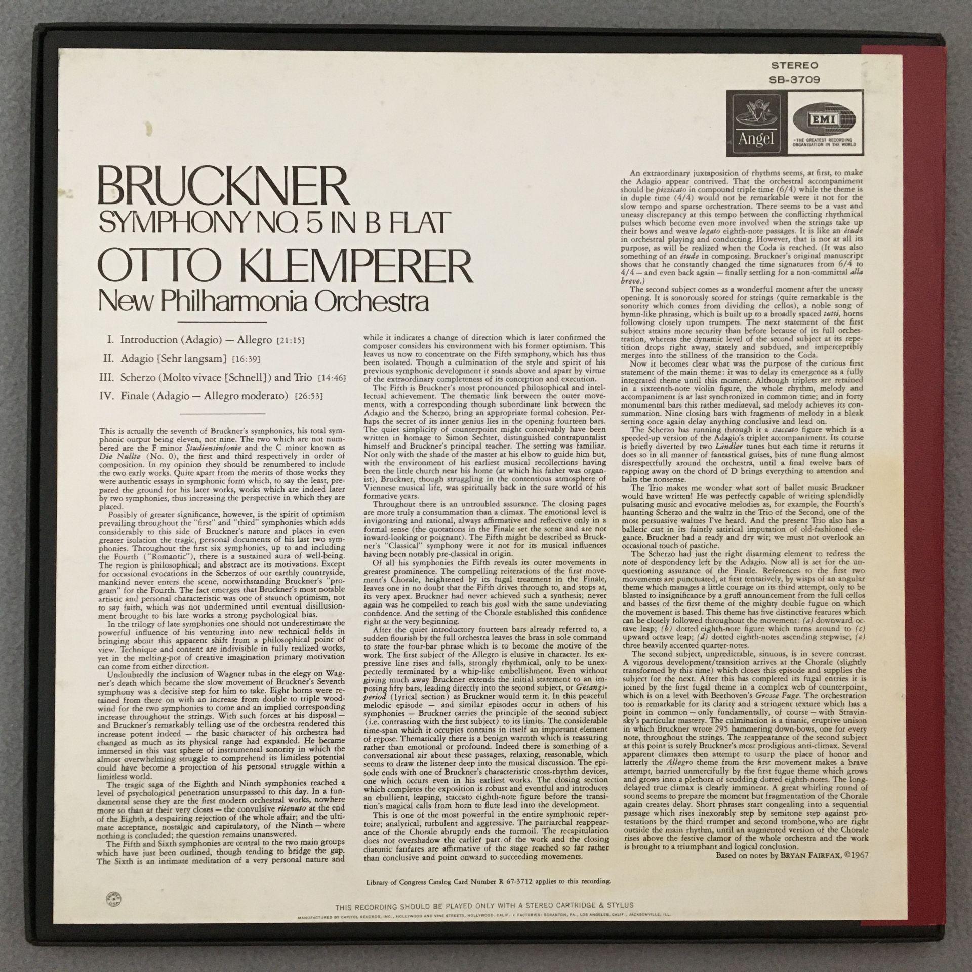 D554 Bruckner Symphony No.5 Klemperer 2LP Angel B-3709 Stereo