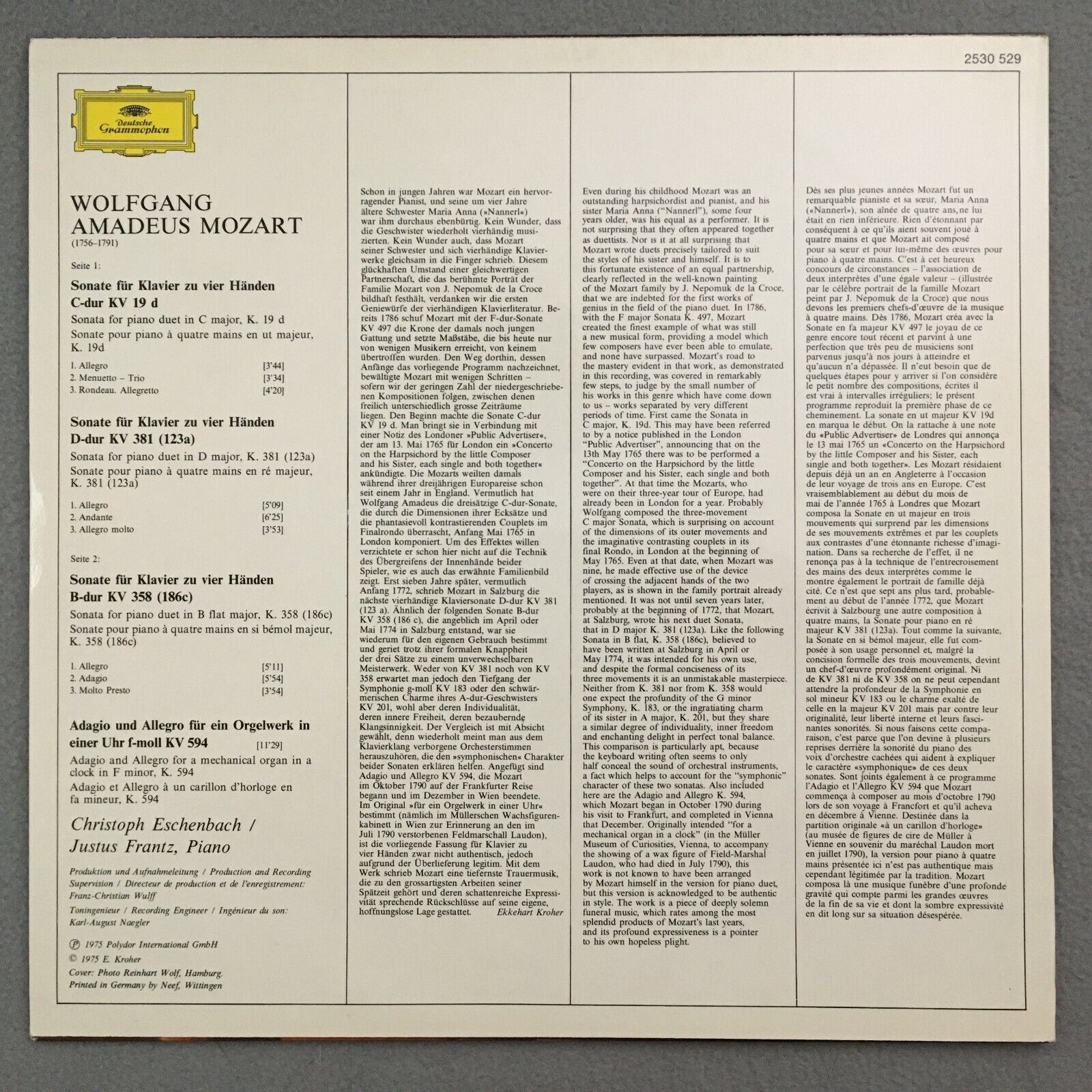 S796 Mozart Four Hands Piano Music Eschenbach Frantz DGG 2530 529 Stereo