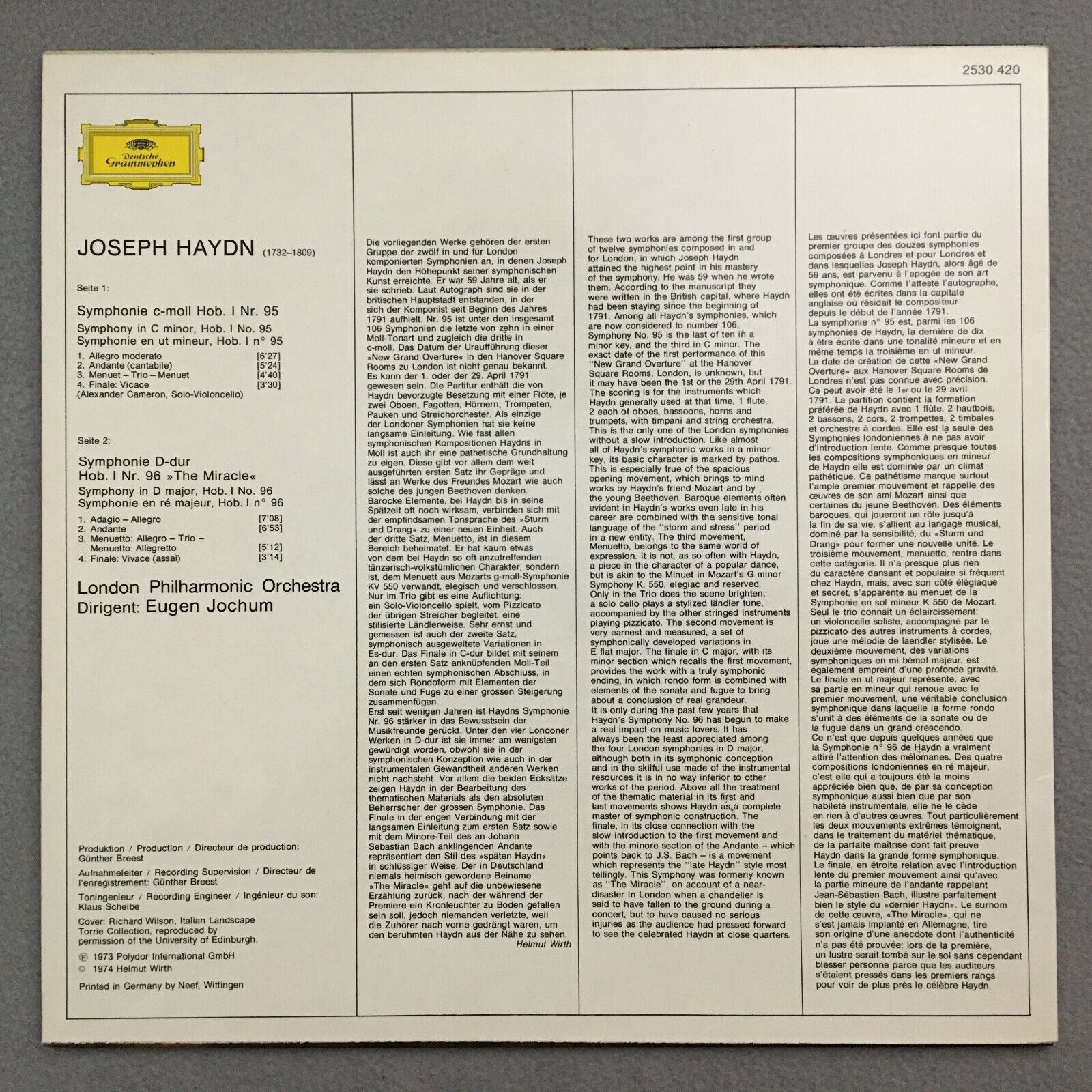S789 Haydn Symphonies No.95 & No.96 Jochum LPO DGG 2530 420 Stereo