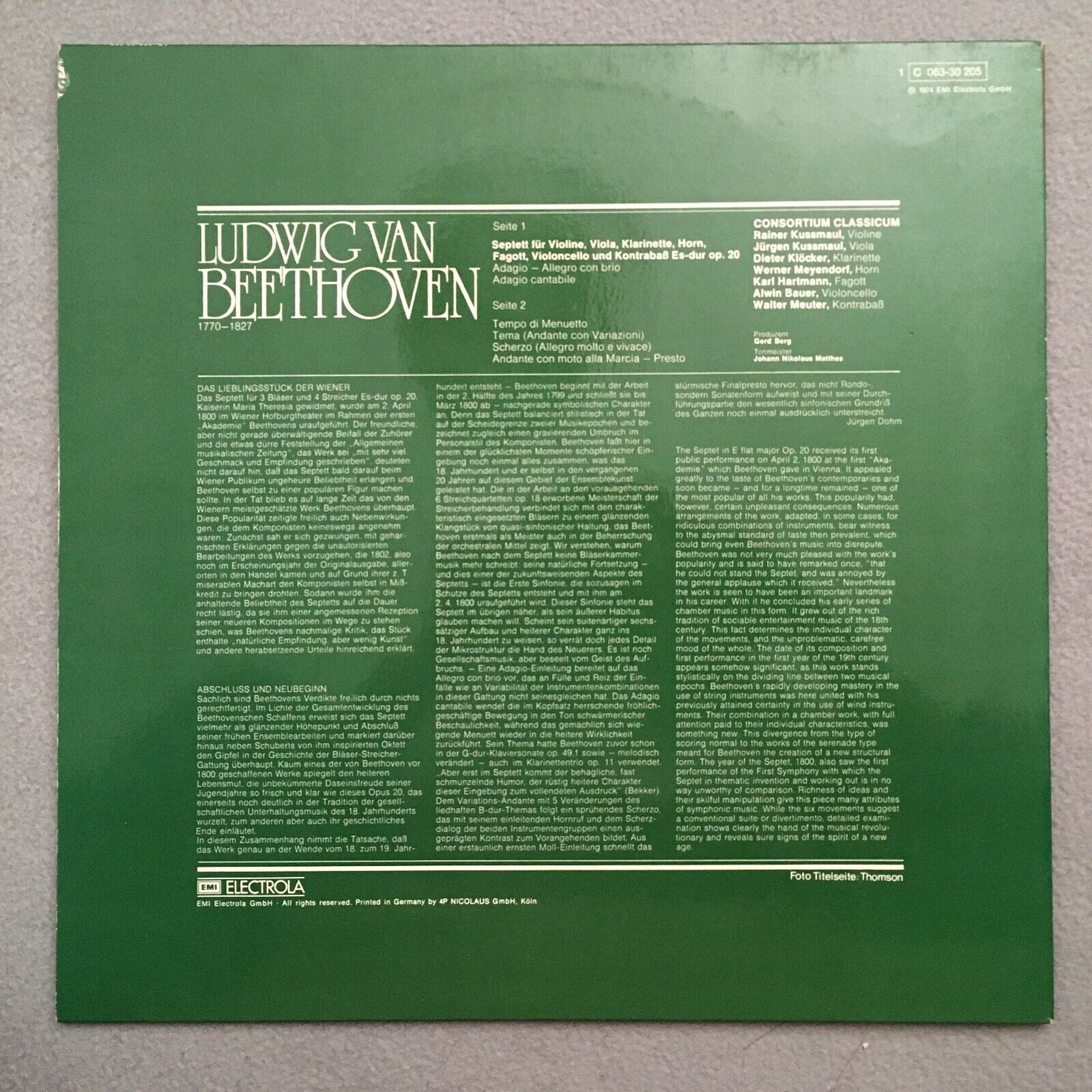 S787 Beethoven Septet Consortium Classicum Klöcker EMI 1 C 063-30 205 Stereo