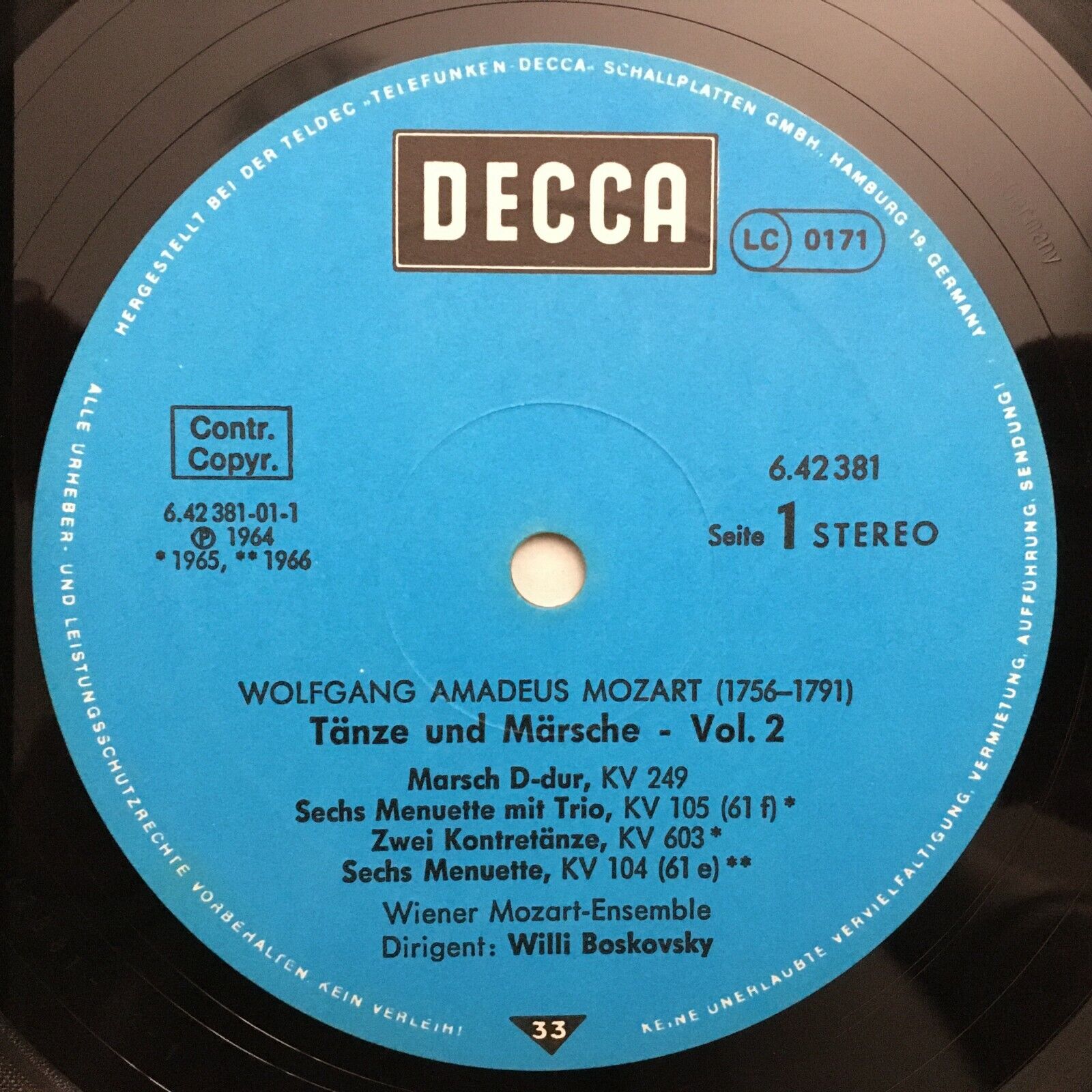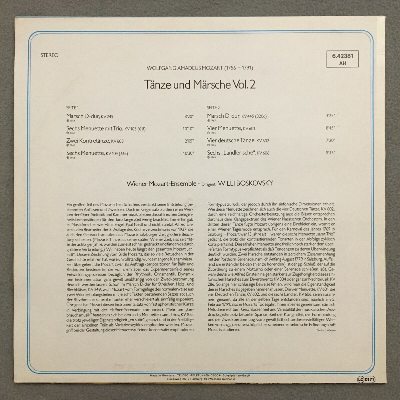 S785 Mozart Dances & Marches Boskovsky Vol.2 DECCA 6.42381 AH Stereo