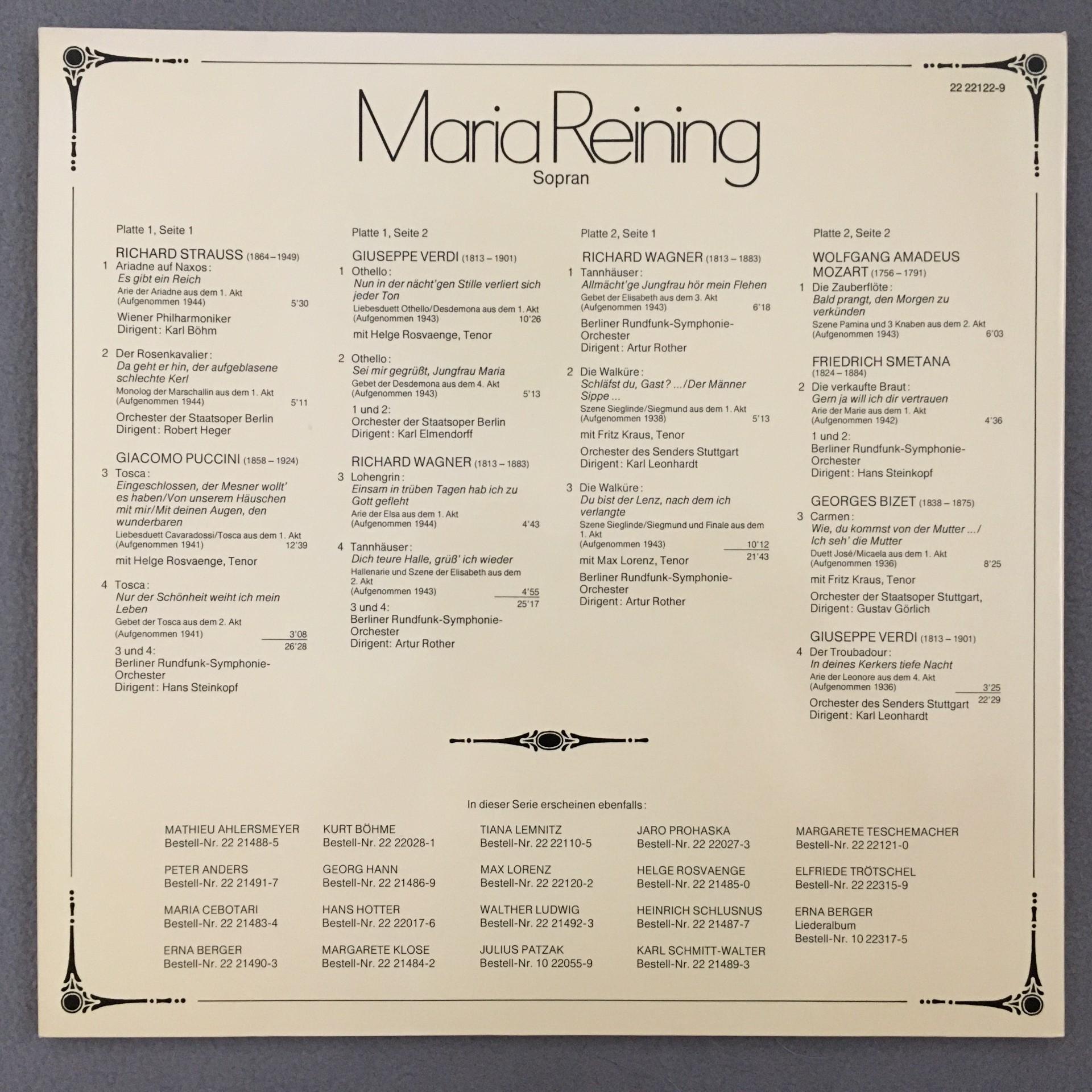 N505 Maria Reinig Arias with Kraus Lorenz Rosvaenge 2LP Acanta 22 22122-9