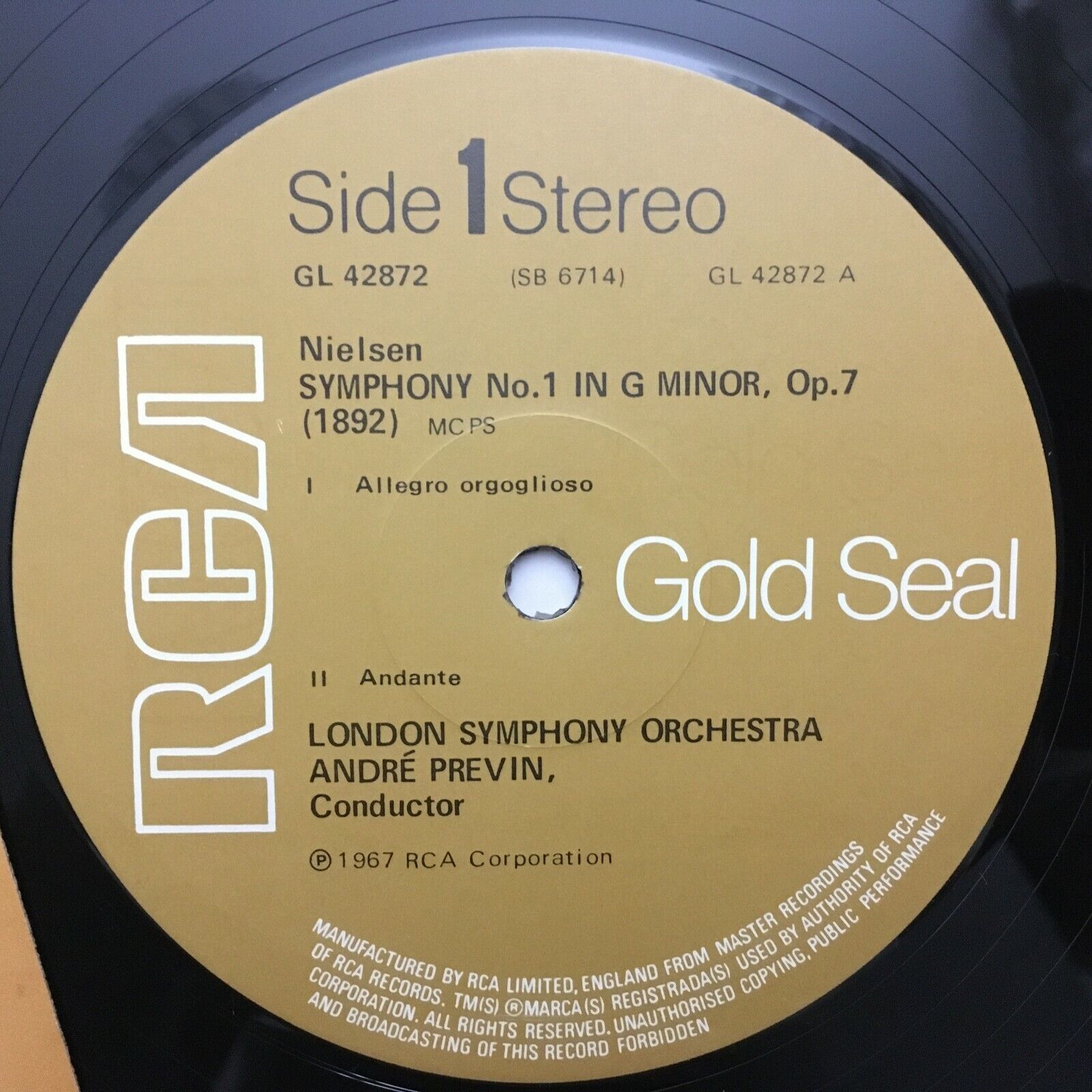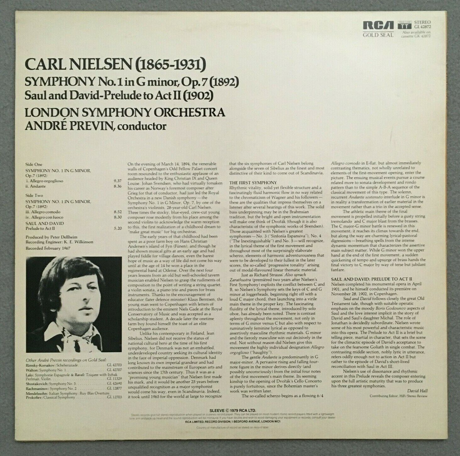 S783 Nielsen Symphony No.1 Previn LSO RCA Gold Seal GL 42872 Stereo