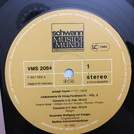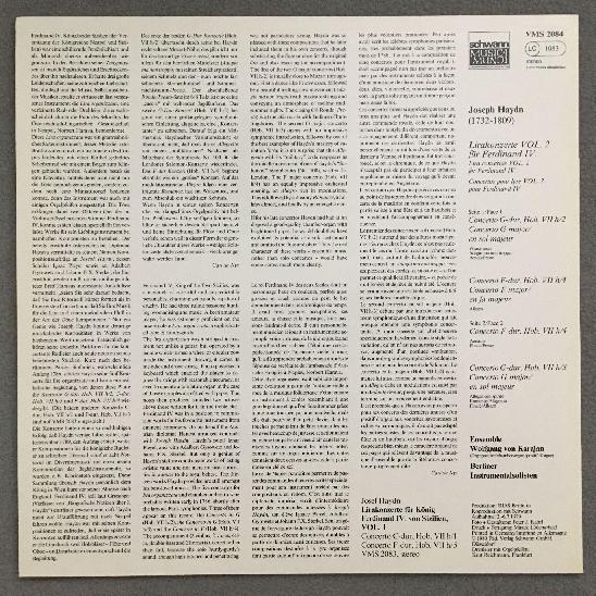 N522 Haydn Lira Concertos Karajan Ensemble Solists BPO Schwann VMS 2084 Stereo