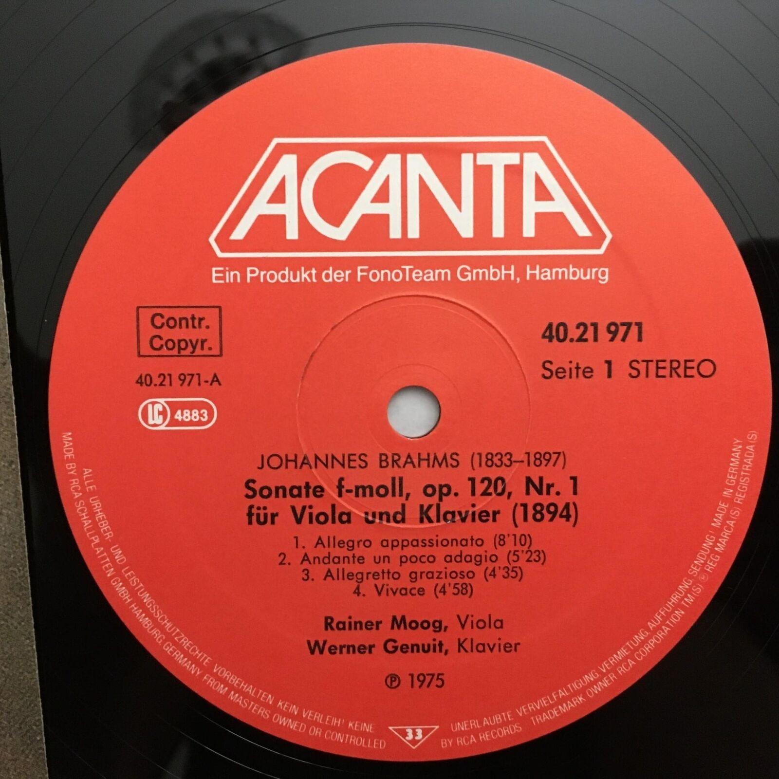 N526 Brahms Sonatas Moog Viola Genuit Piano Acanta 40.21 971 Stereo