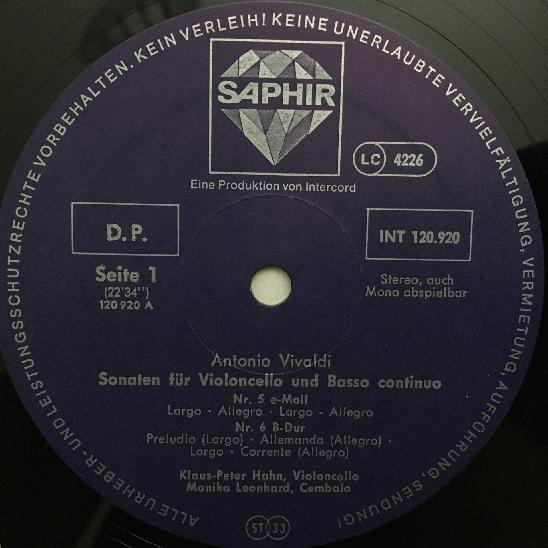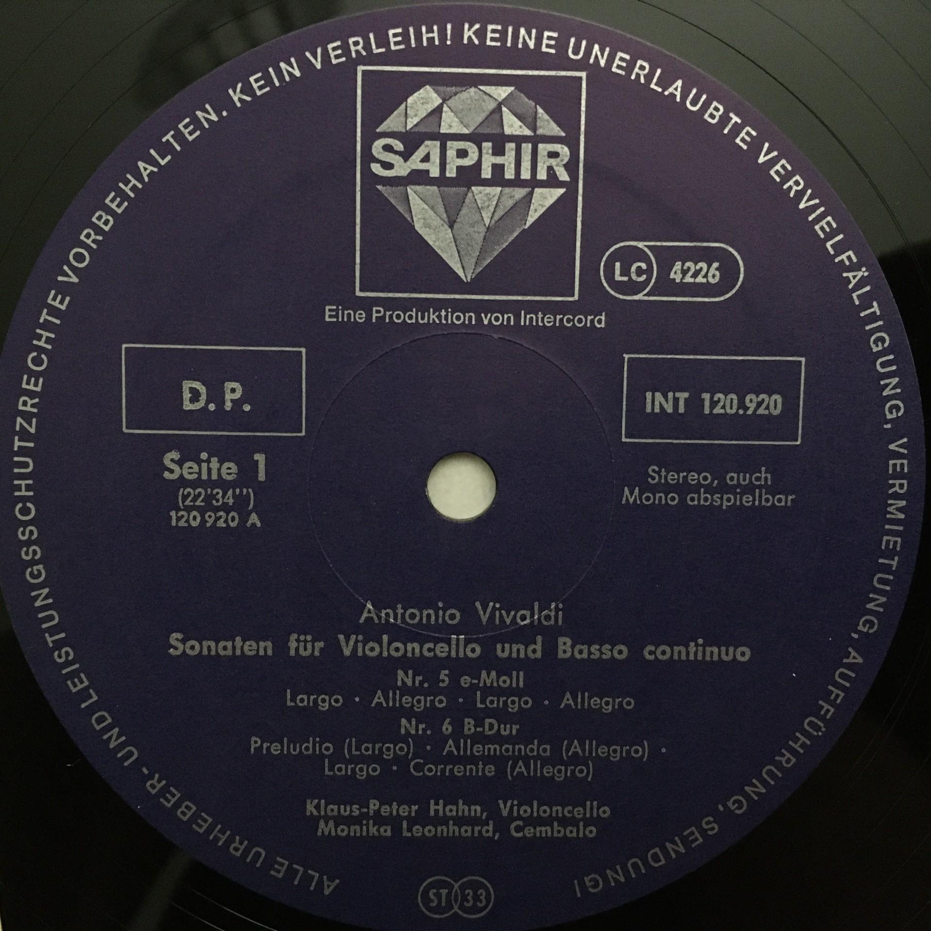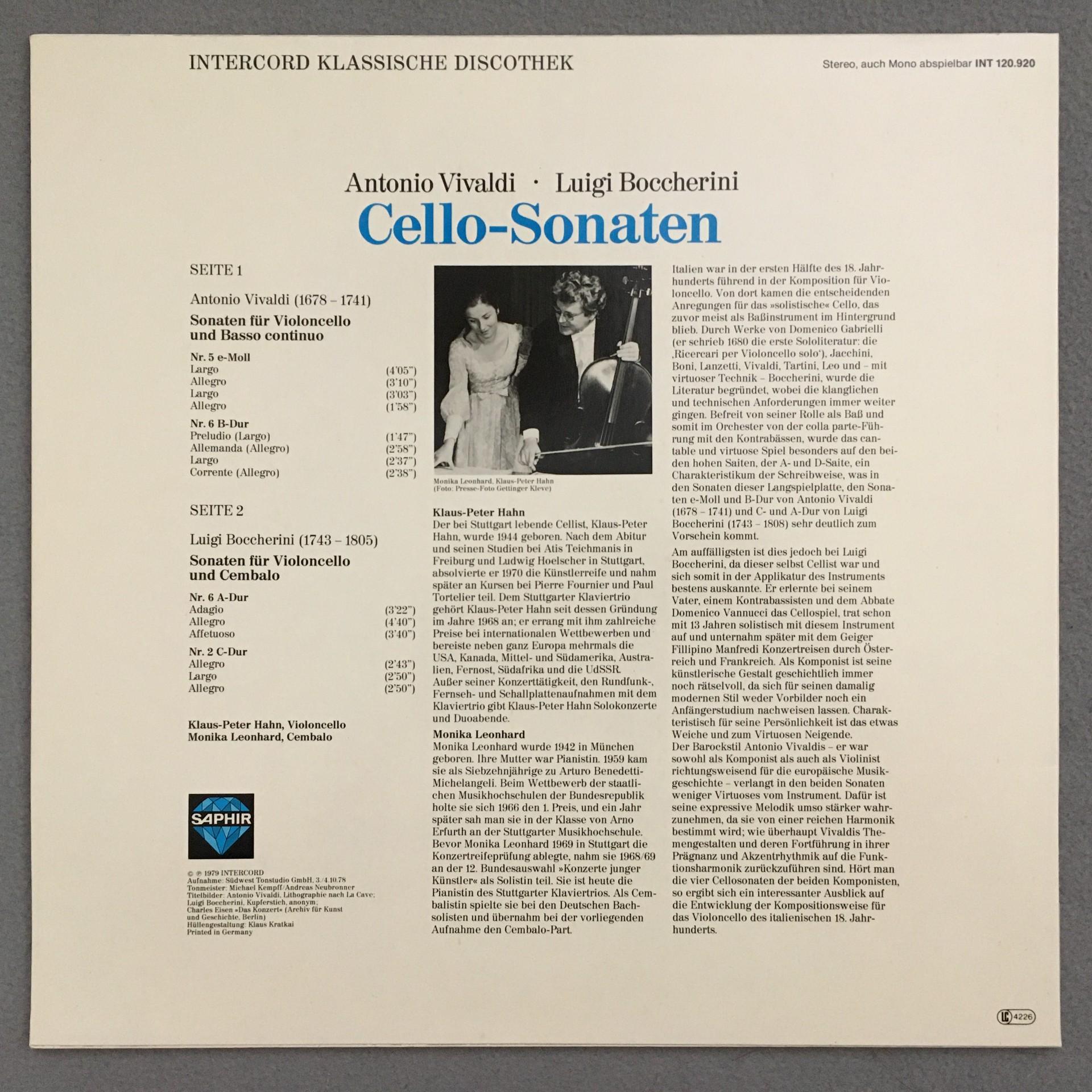 N530 Vivaldi Boccherini Cello Sonatas Hahn Leonhard Saphir INT 120.920 Stereo
