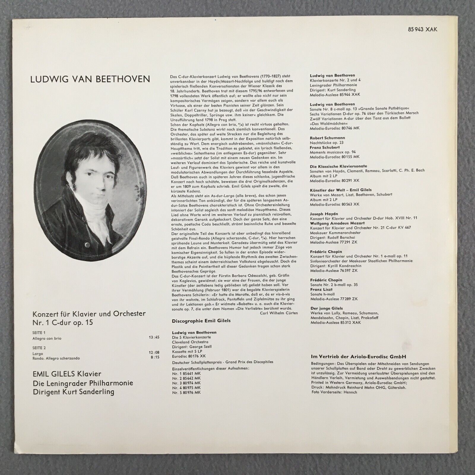 S316 Beethoven Piano Concerto No.1 Gilels Sanderling Melodiya 85 943 XAK Stereo