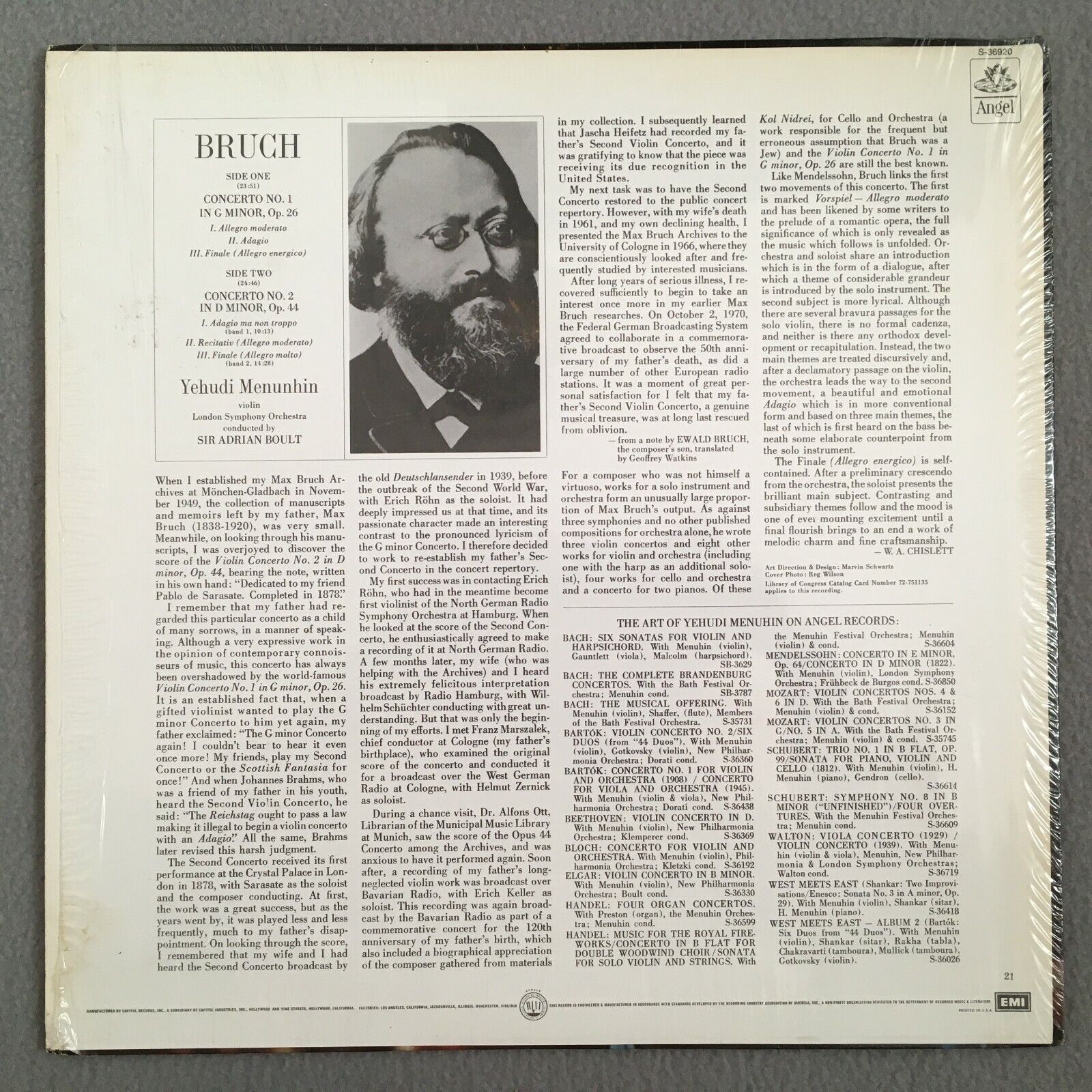 S315 Bruch 2 Violin Concertos Menuhin Boult Angel S-36920 Stereo in shrink