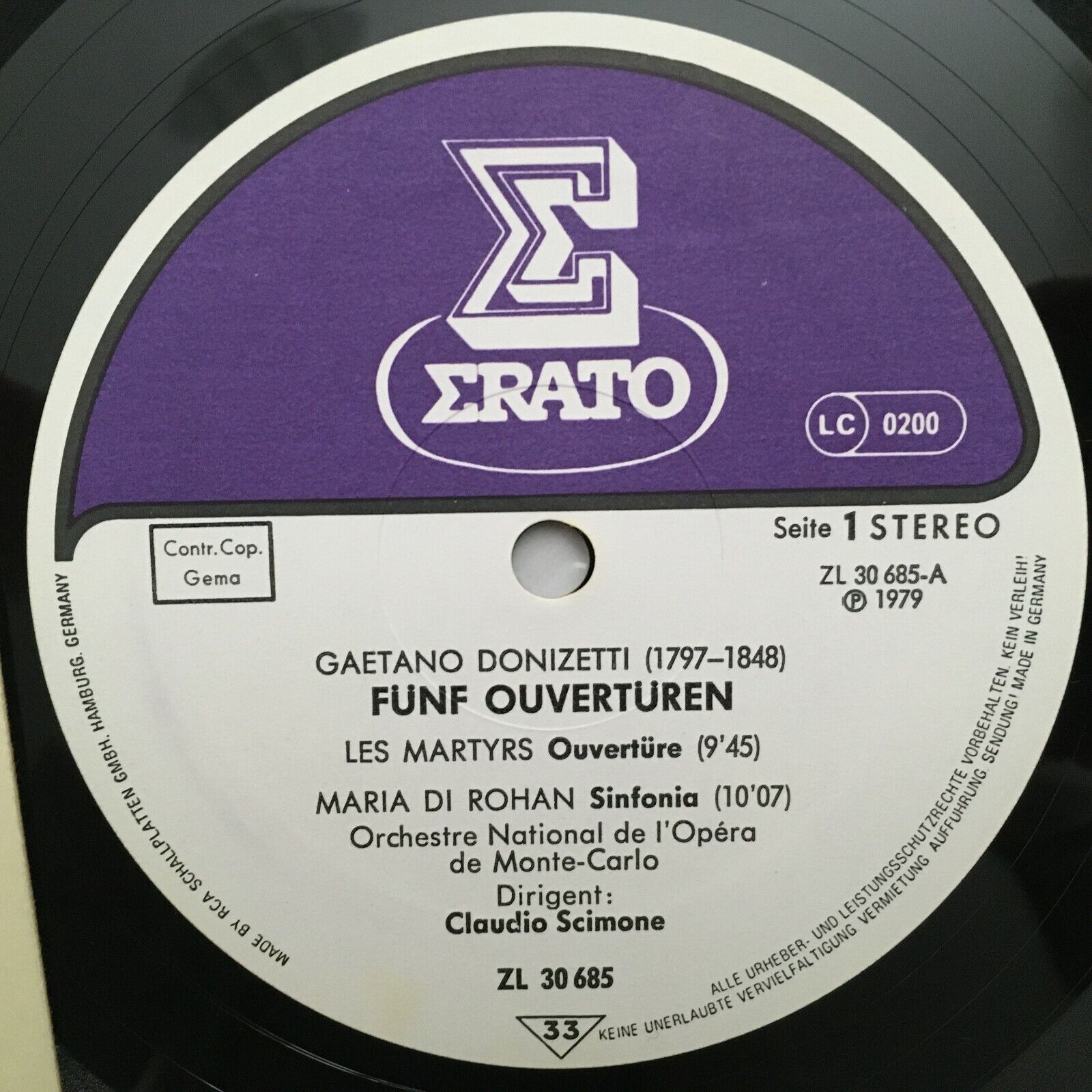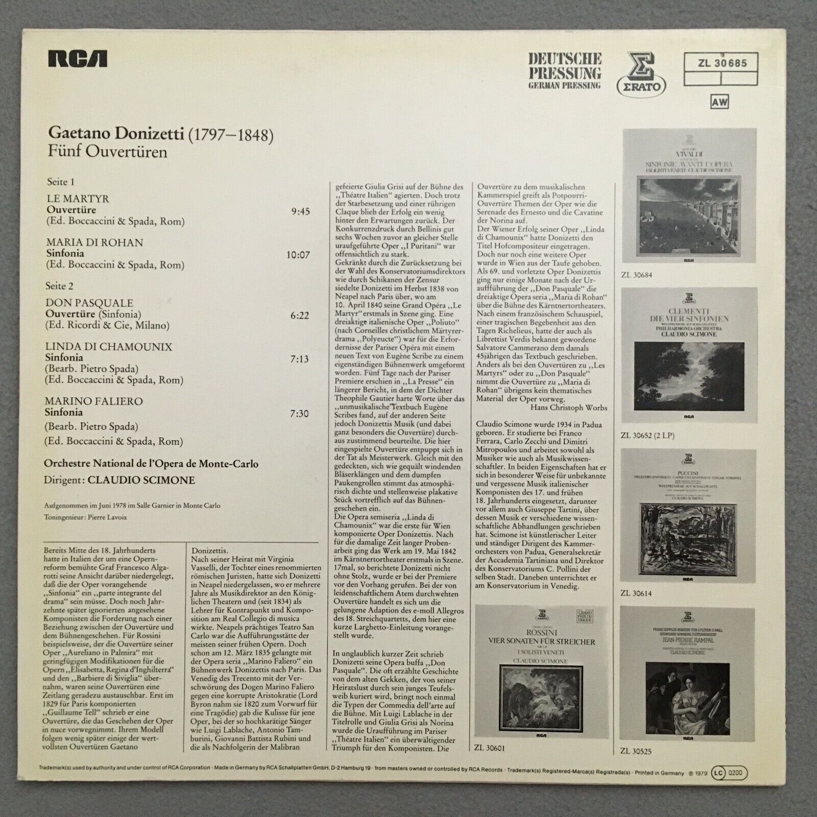 S780 Donizetti 5 Overtures Scimone Erato ZL 30 685 Stereo