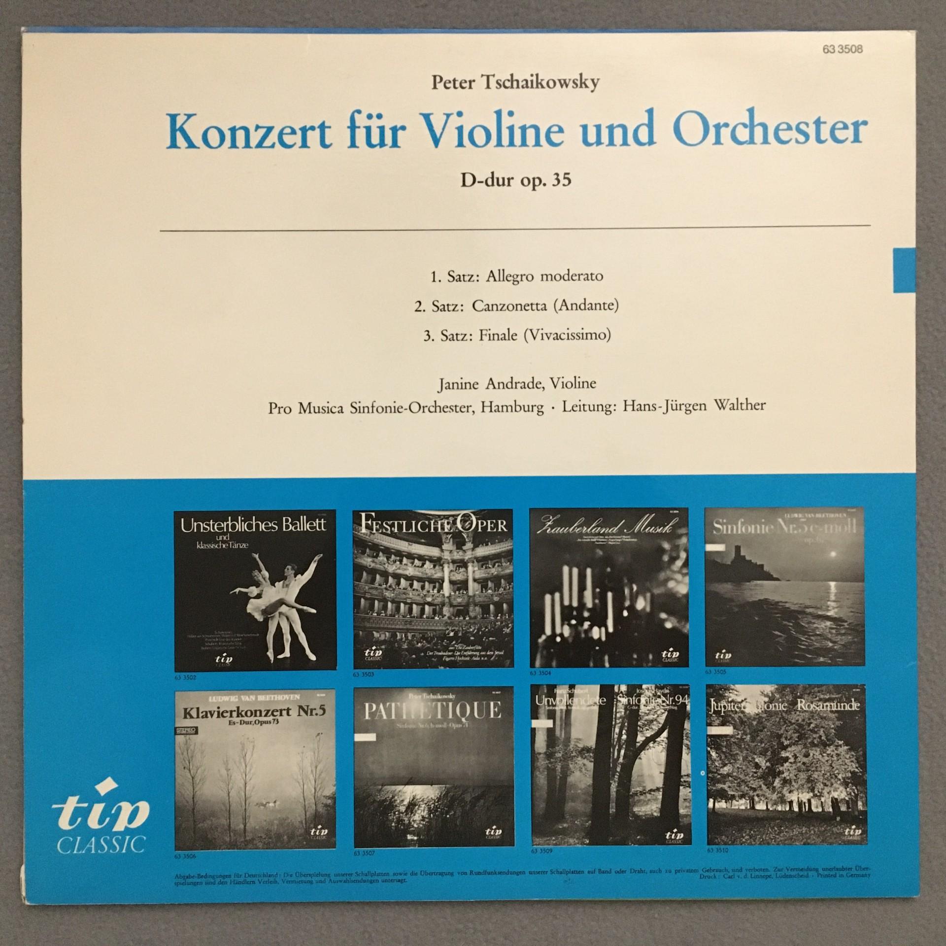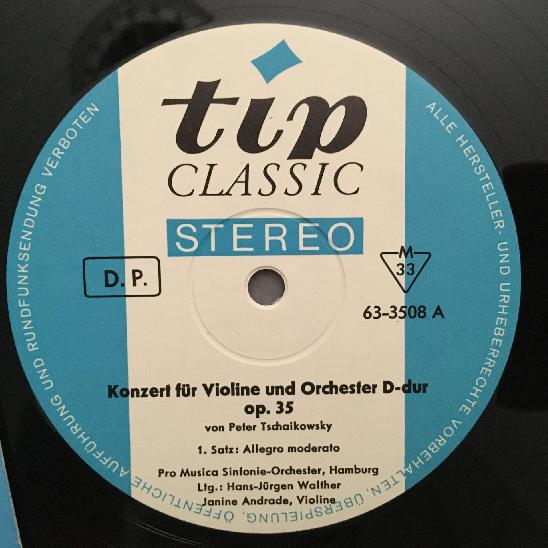 N540 Tchaikovsky Violin Concerto Andrade Walther Tip Classic 63 3508 Stereo