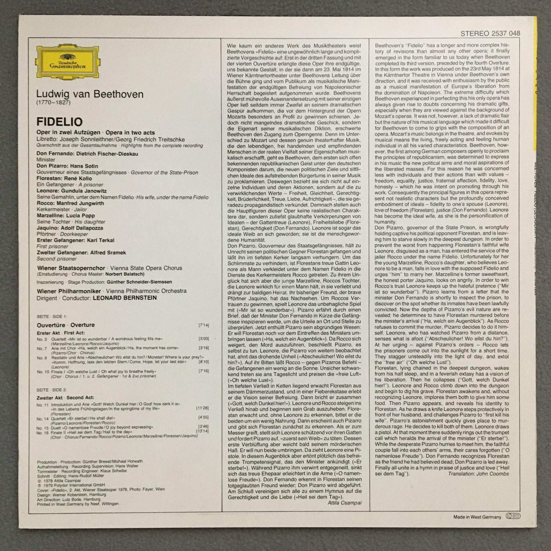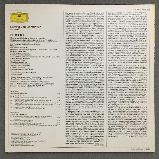 N542 Beethoven Fidelio Janowitz Popp Kollo Bernstein DGG 2537 048 Stereo