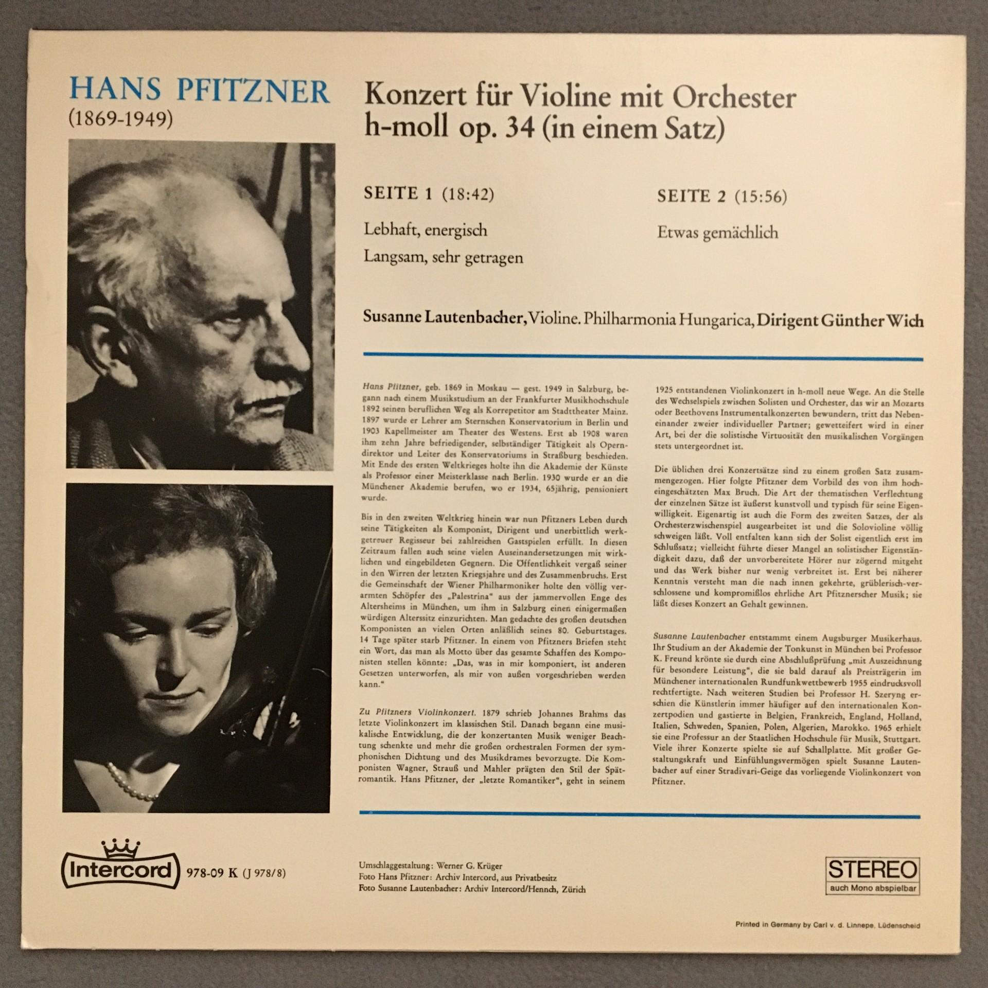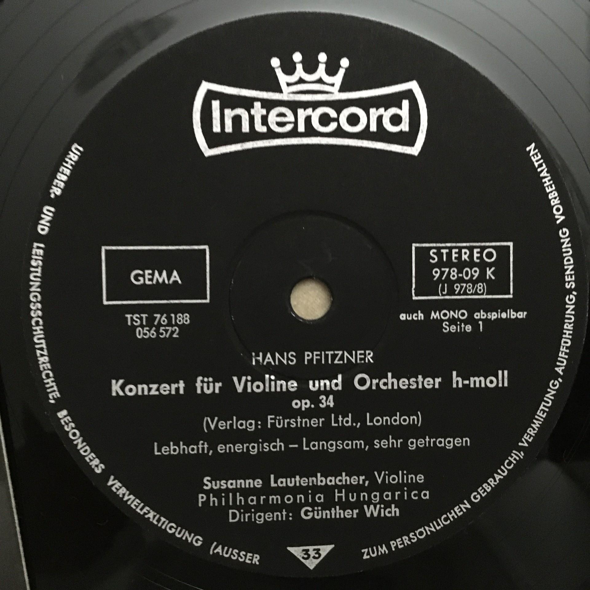 N553 Pfitzner Violin Concerto Lautenbacher Wich Intercord 978-09 K Stereo