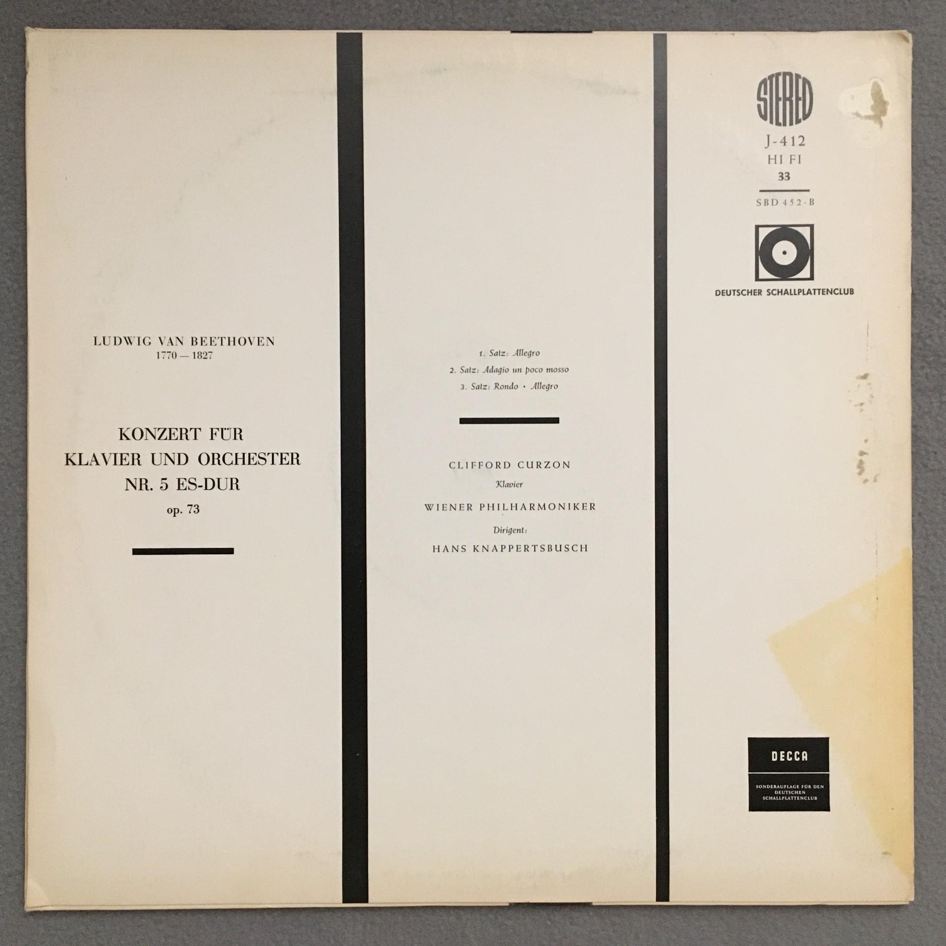 N561 Beethoven Piano Concerto No.5 Curzon Knappertsbusch VPO DECCA J-412 St